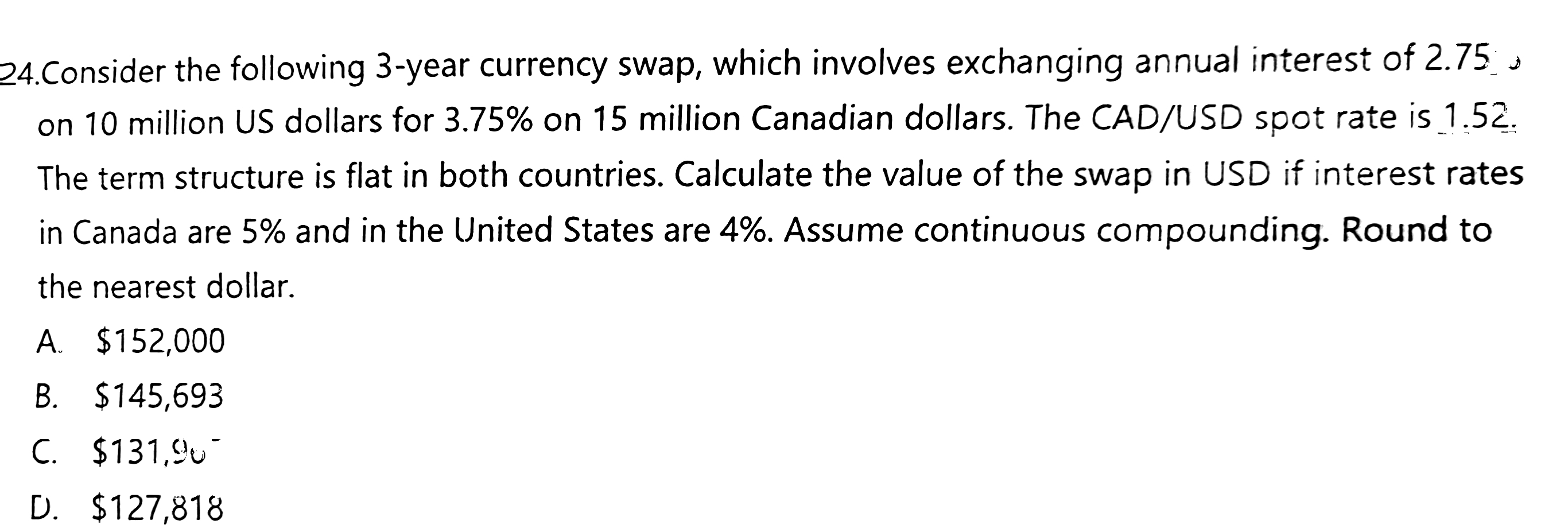 老师,这个不是看成两个币种的债权贴现求现值之后,用汇率换成同币种,再相减吗?为什么不能用N,PMT这种方法呢?这种方法默认连续复利还是离散复利呀