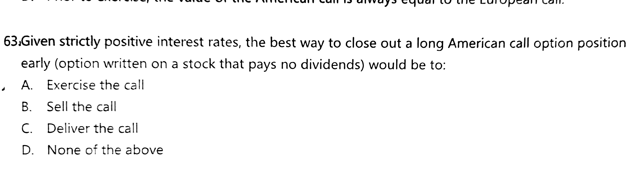 同学,对于理性投资者,当没有股息时,就没有任何理由提早兑现美式看涨期权,行权还不如把看涨期权卖掉,其他是干扰选项哈