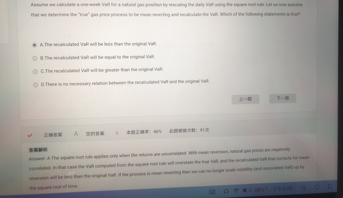 考察的知识点是均值回归和平方根法则。在第二本书里或者第四本书里。