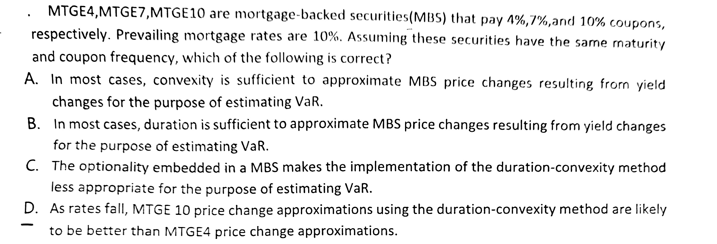如果可以用有效久期和有效凸性计量的话,这道题为什么选C呢,以及其他选项为什么错误呢