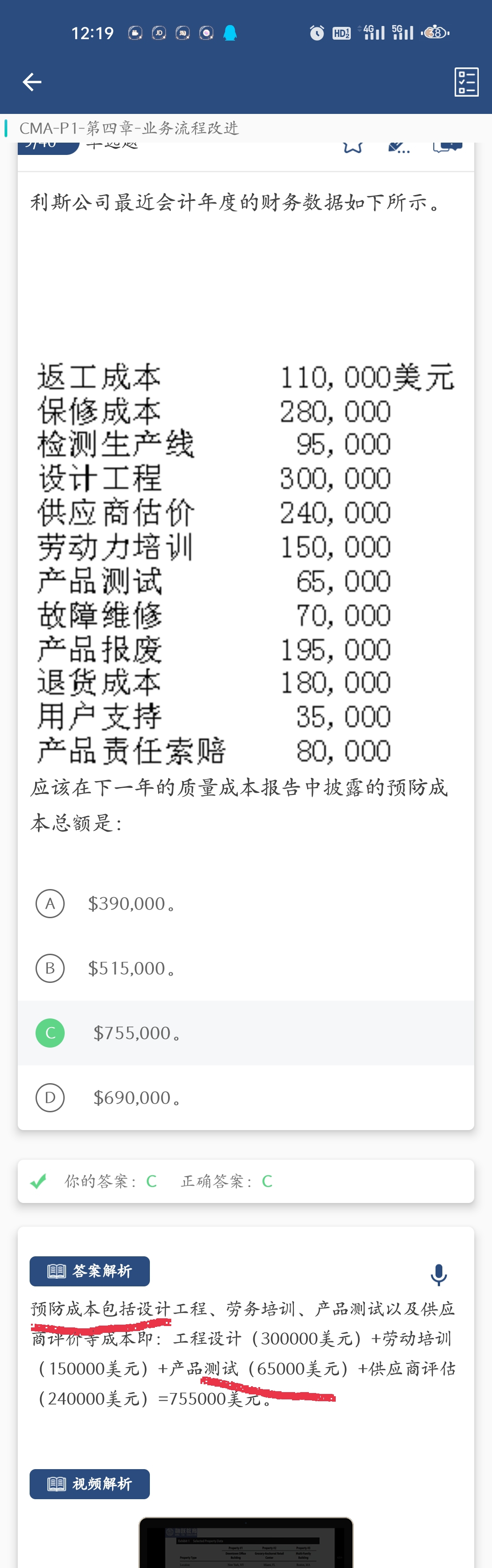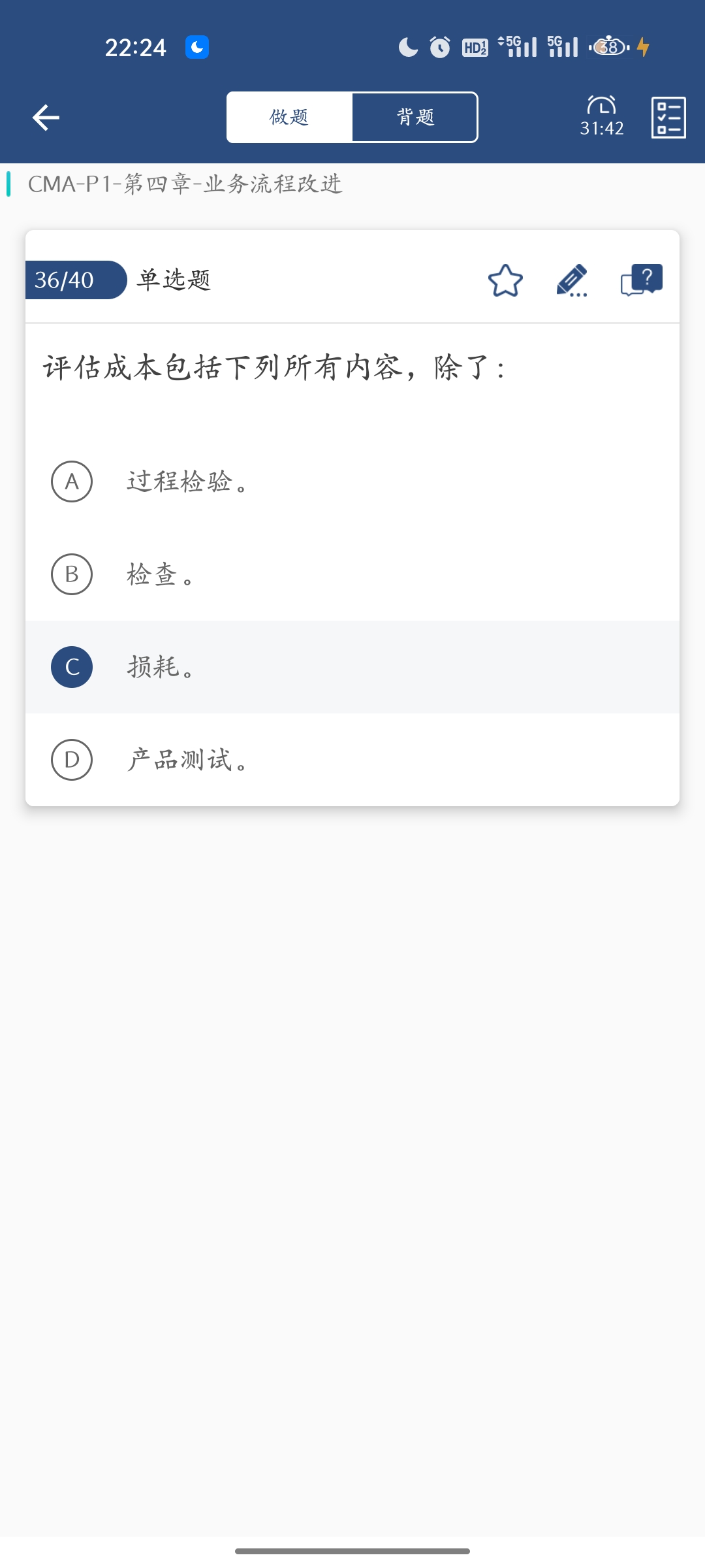 如果题目是单纯的文字题,就是问产品测试属于哪一种成本,回答评估成本。如果是计算题,看一下整体语境,现在一般不会再考有争议的题目了。