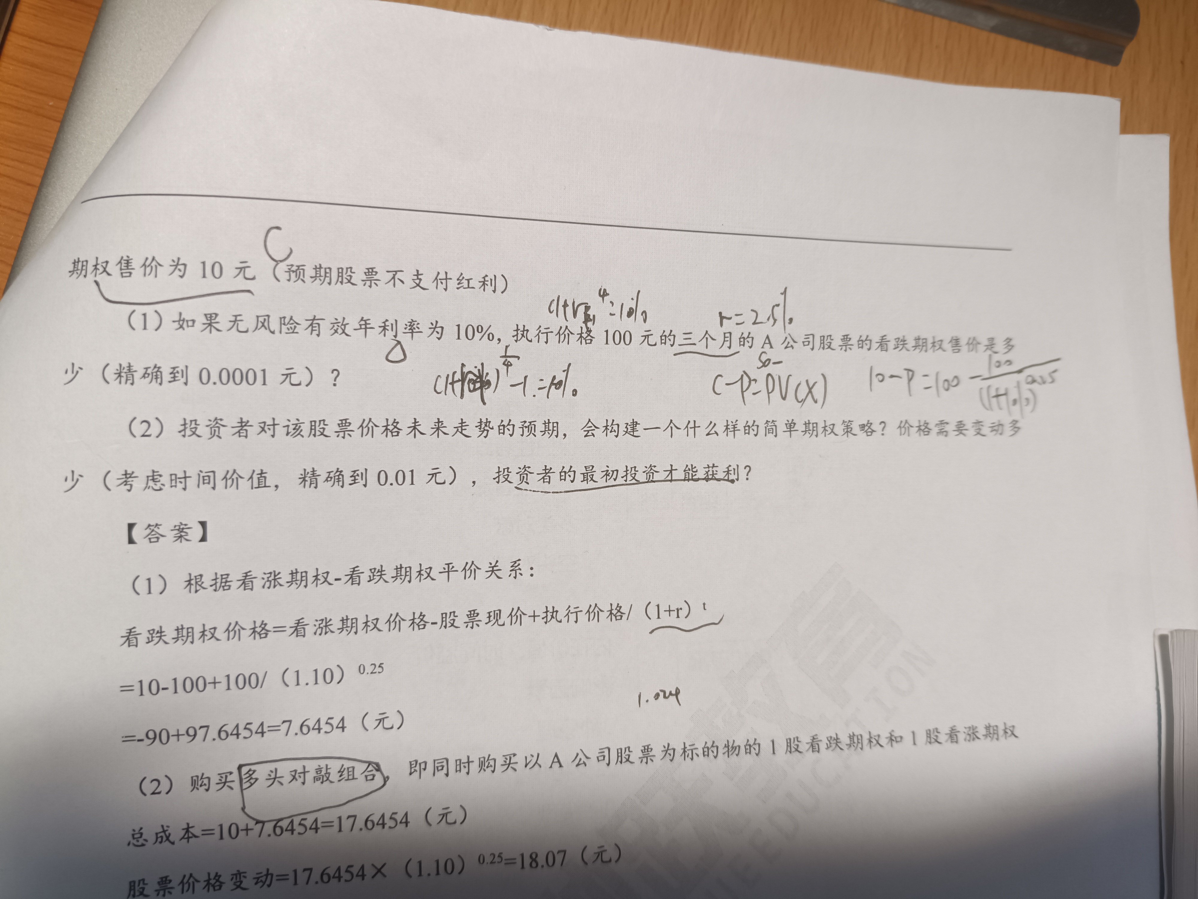 同学您好。这个地方就是按照固定的看涨期权-看跌期权平价关系等式去计算即可。
