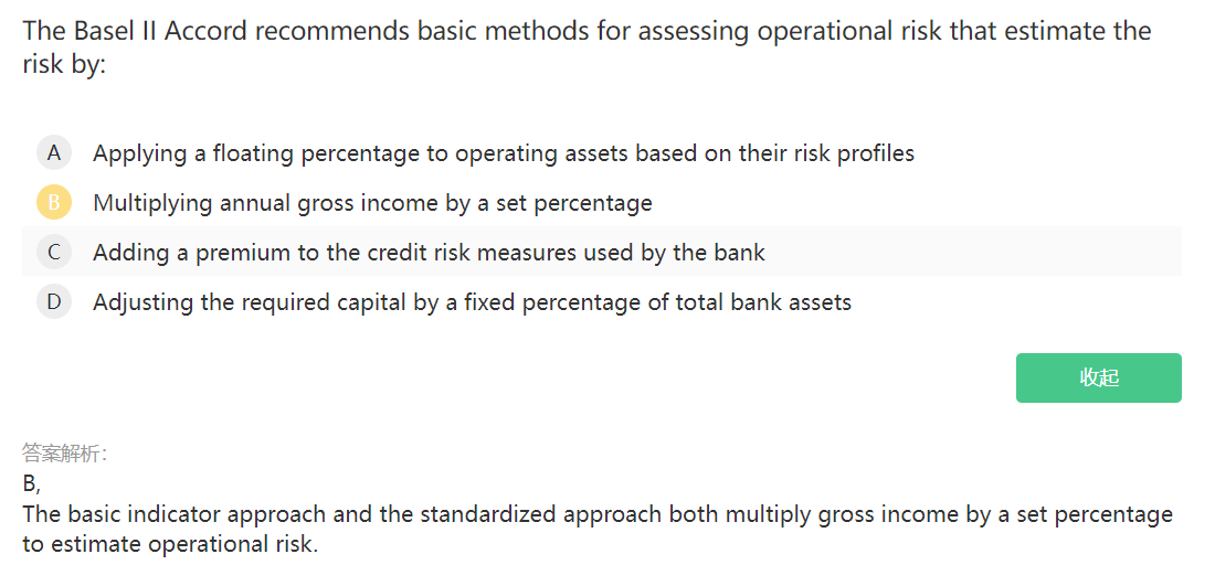 同学,BIA和SA方法都是GI*设定百分比加总来计算操作风险的哈,BIA方法中alpha没有特殊说明的话就取0.15,SA方法是区分不同的业务条线来赋值的,我们直接记关键字口诀会快一点哈,公交结算18%,商行托管15%,零售资产12%