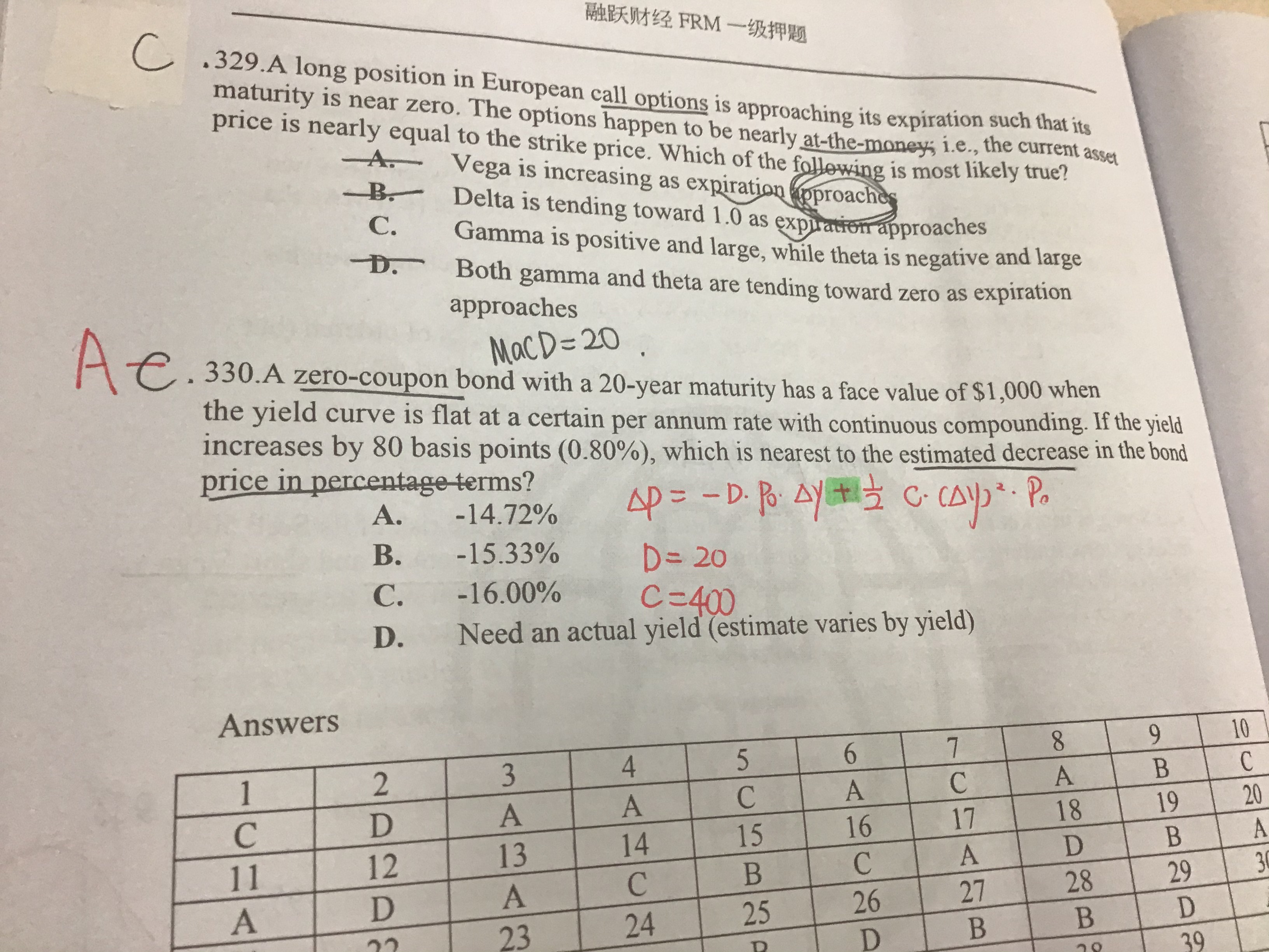 连续复利的零息债的修正久期和Macaulay 久期是一样等于maturity的,。这个可以推导出来。convexity的计算也没有问题,这是定义式。