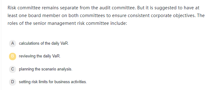 风险委员会负责所有与公司风险管理相关的事物,ABC是业务条线的职能