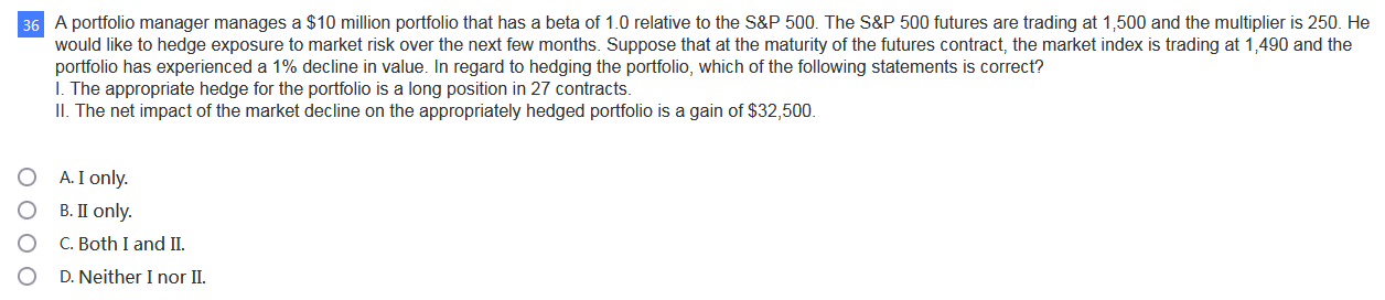 同学,首先,我们用beta对冲的公式来计算对冲份额,用待对冲头寸比上对冲工具即可;在市场风险变动的情况下,求整体的价值变动,可以分为投资组合的价值变动和对冲工具的价值变动,两者叠加即可哈
