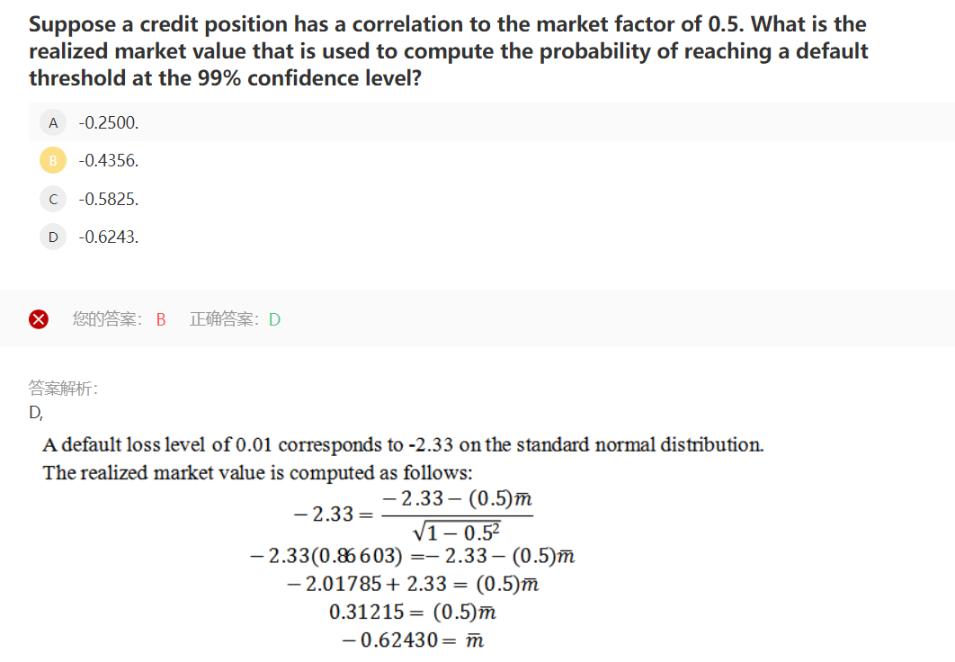 同学,是单因素模型求违约概率的知识点哈