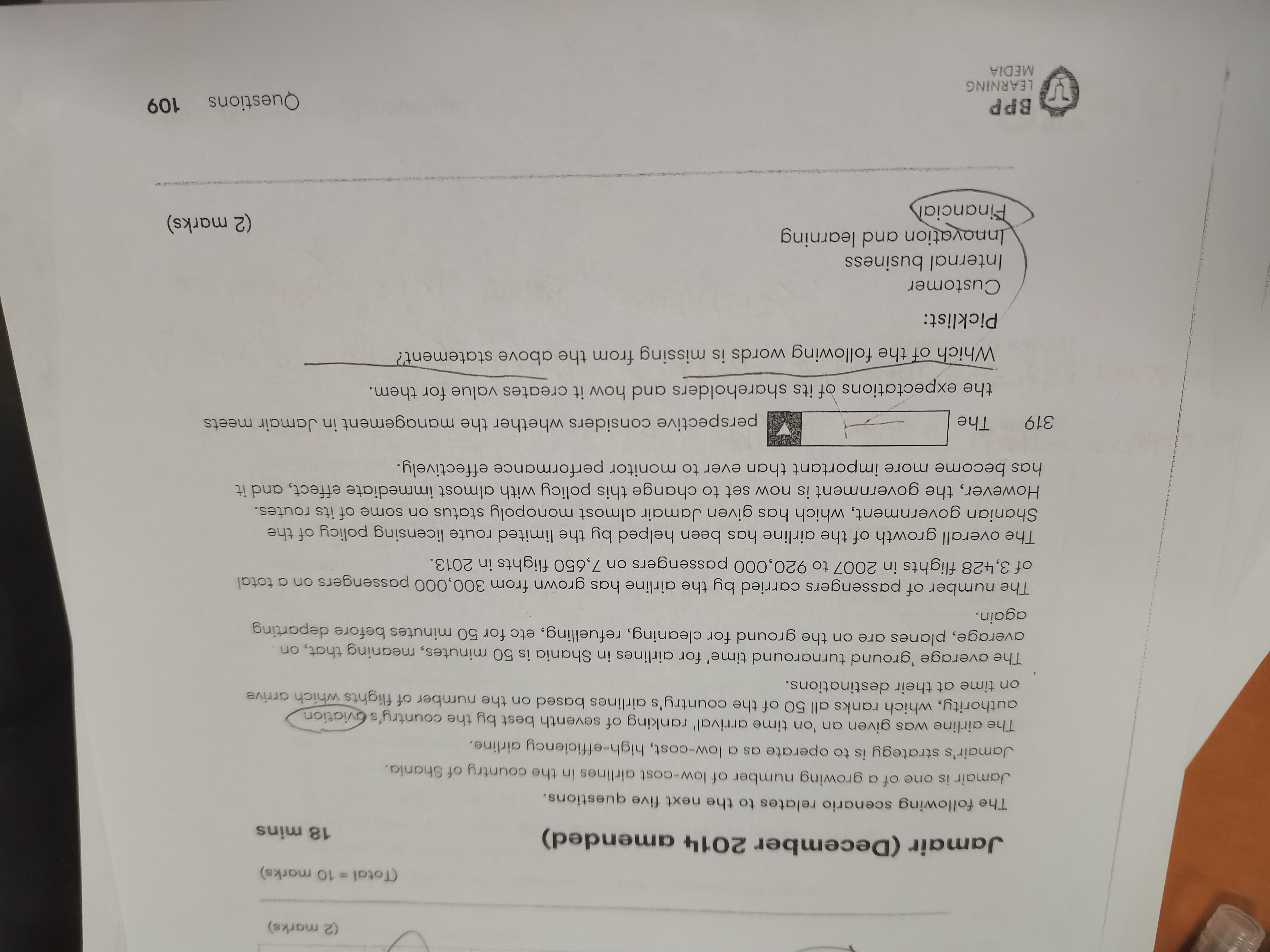 飞机的转机时间这个是公司运营的内部管理, 第三个选项一般是跟创新,员工,新产品有关的