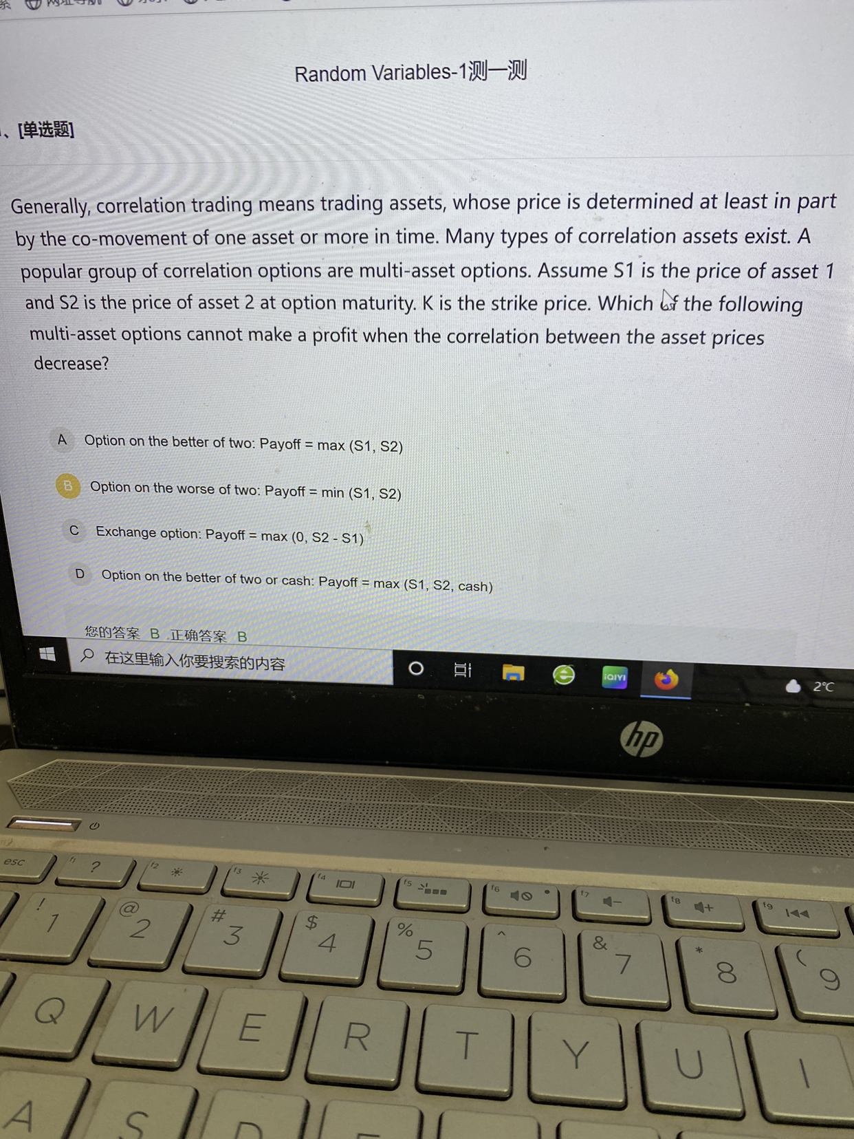 简单设想一下,买min形式的期权,即:希望价格越低越好,所以他们更倾向是买价格的下跌,跌幅越大,收益越高。然而资产之间相关系数下降往往发生在市场好的时候,相反,市场恶化,我们说相关系数会激增,分散化策略也会导致亏损。