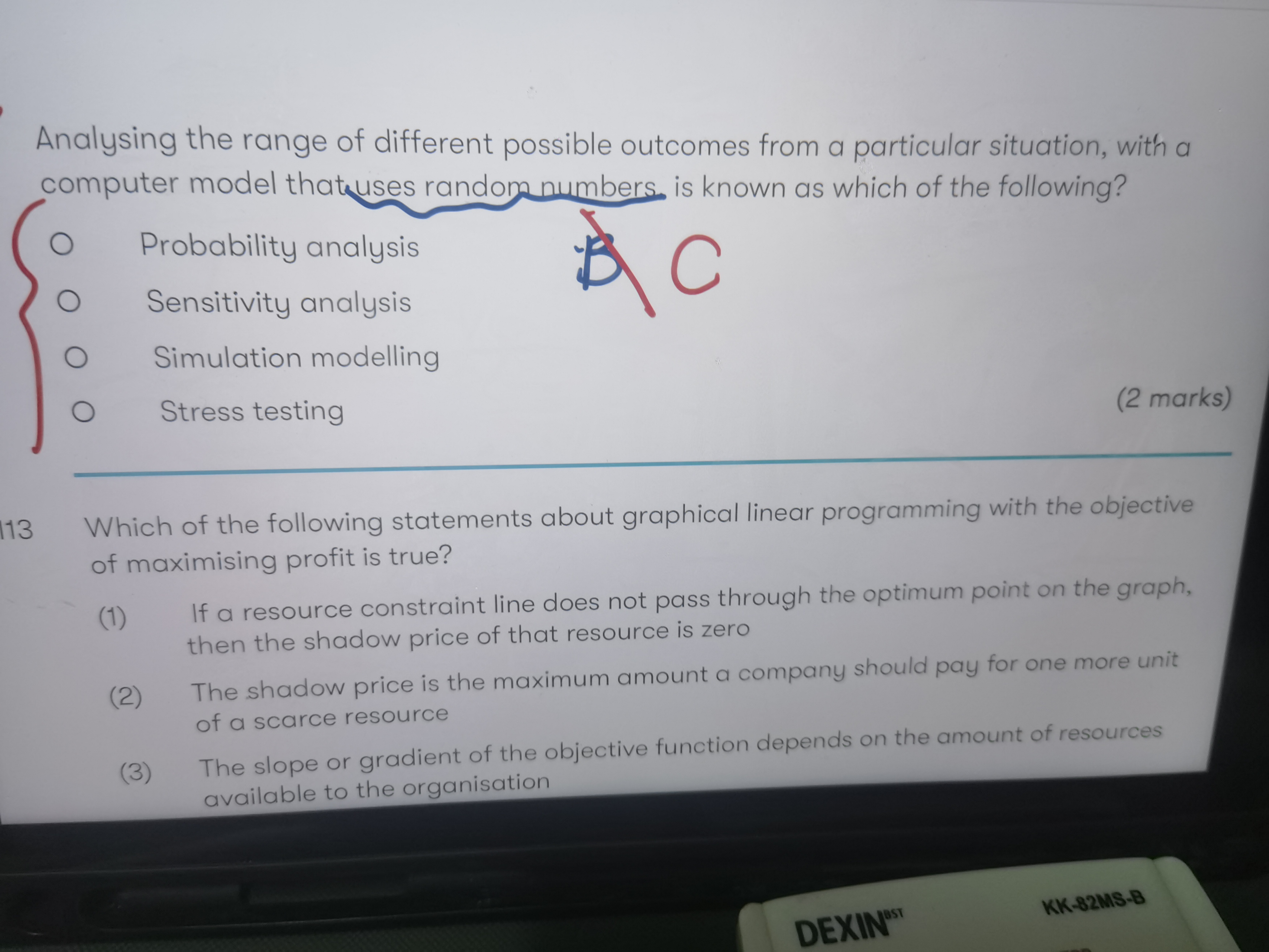 同学,选项1:概率分析,使用概率学可能性进行进一步分析;选项2:敏感性分析,一个变量的小变化会引起另几个变量的怎样的变化,是否变化大;选项3:建模,使用无序的数字去用电脑建数字模型;选项4:压力测试,突然大量的数据涌入,看是否仍能顺利进行。