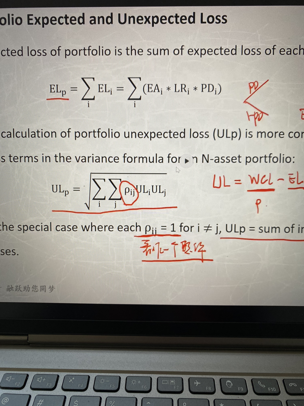 这个是算的组合非预期损失,类似组合方差或者组合VaR的计算方法,加总符号体现的是当组合中有N个资产时,对应的求和表达式