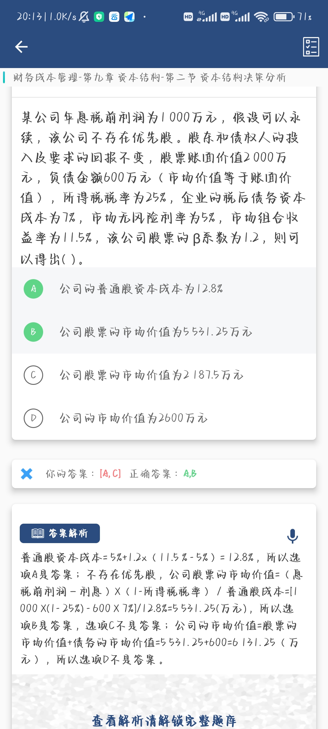 同学您好 这一块只是建议您先再听一下课程以及看一下教材资料 PD是优先股股息的意思,Rs是资本成本的意思 600*7%计算的是债务的利息,即解析里的利息。 祝您学习愉快!