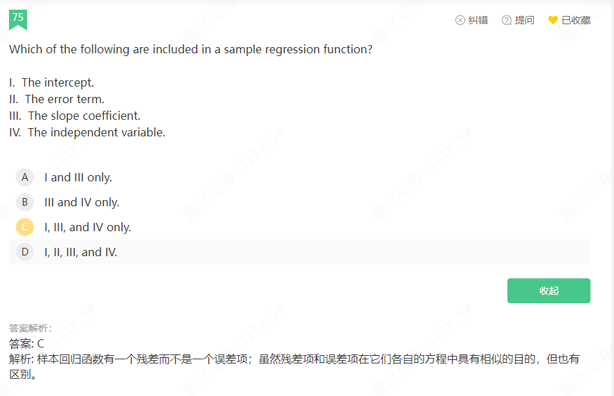 同学你好,误差的含义更广泛,指的是估计出来的近似值与实际值之间的差异,而残差的含义比较狭窄,指的是在模型当中(一般是线性回归当中)预测值(因变量)与实际值之间的差异,误差包括系统误差(比如模型不同带来的误差)和随机误差(比如样本不同所带来的误差,其实就类似于残差),所以误差包括残差,在线性回归的讨论中,误差和残差含义十分相似,但是更加准确的表达还是用残差来表达。