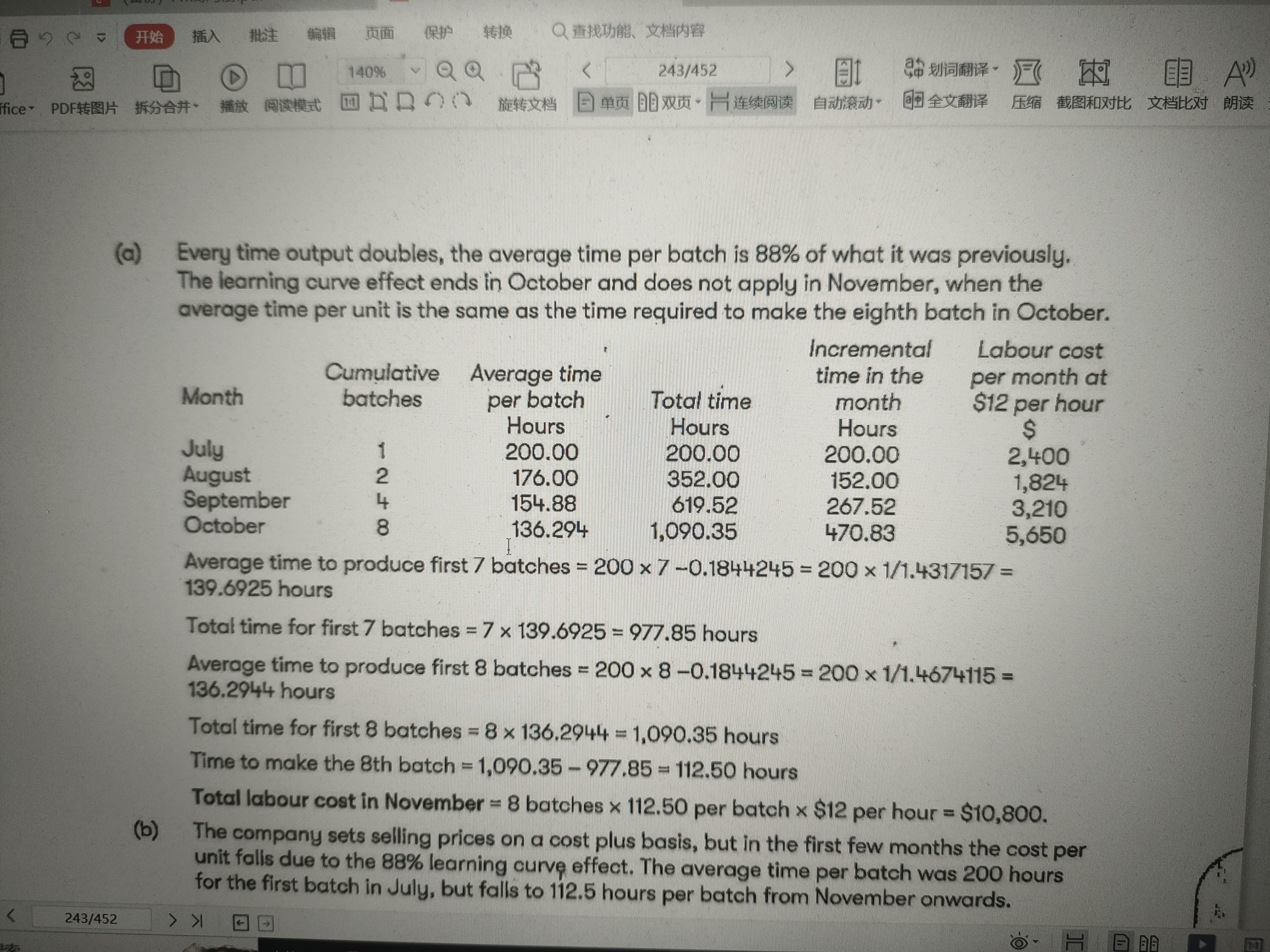 同学,不是额外的增加的时间,是较上个月本月增加的时间,本月累计数减去上月累计数得出本月数,再用本月时间乘以labour rate。