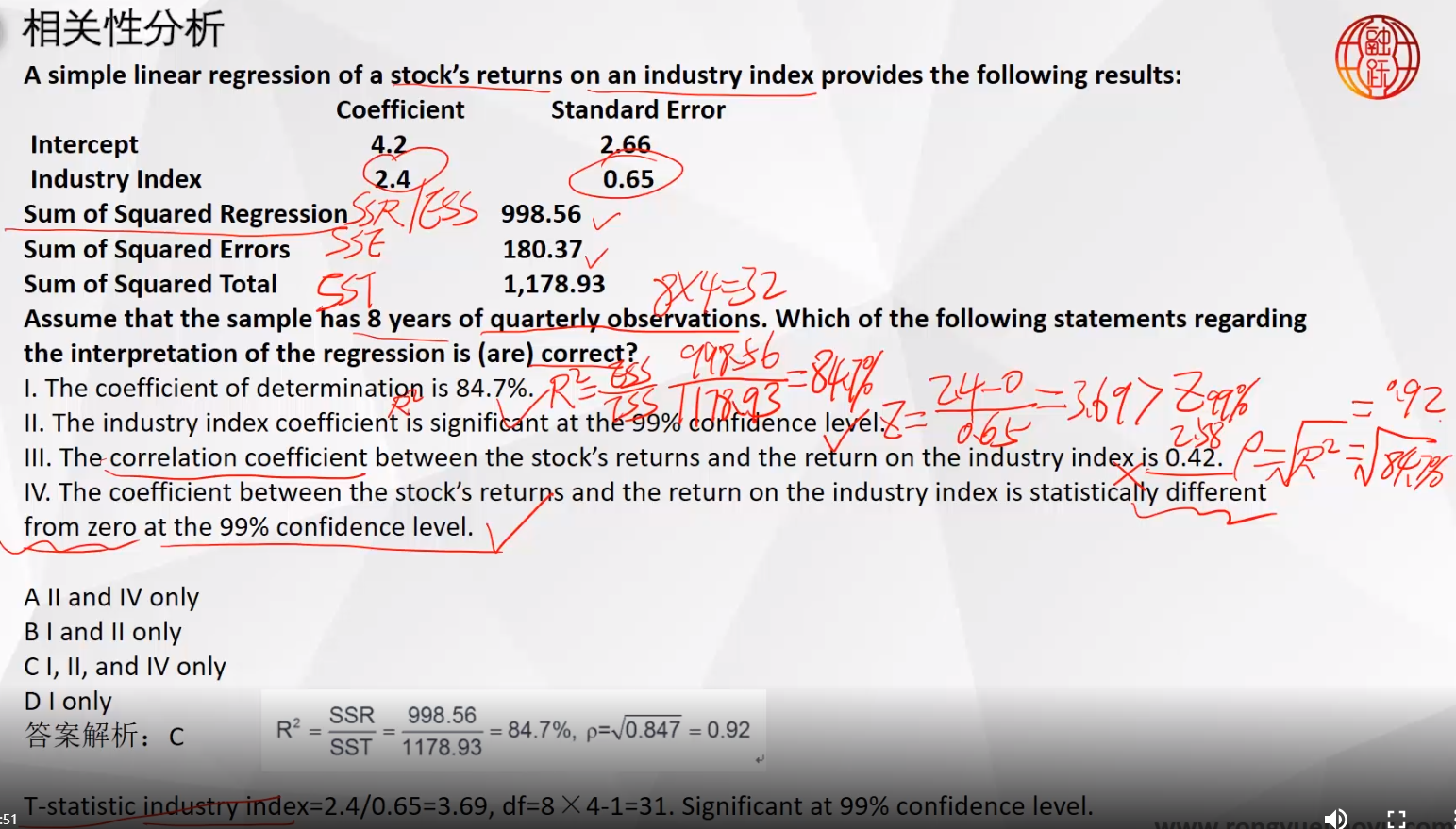 同学你好,这道题可能是题干排版问题,其中第二个说法和第四个说法是一个意思,都是检验回归系数是否显著不等于于0,具体参考图片理解。