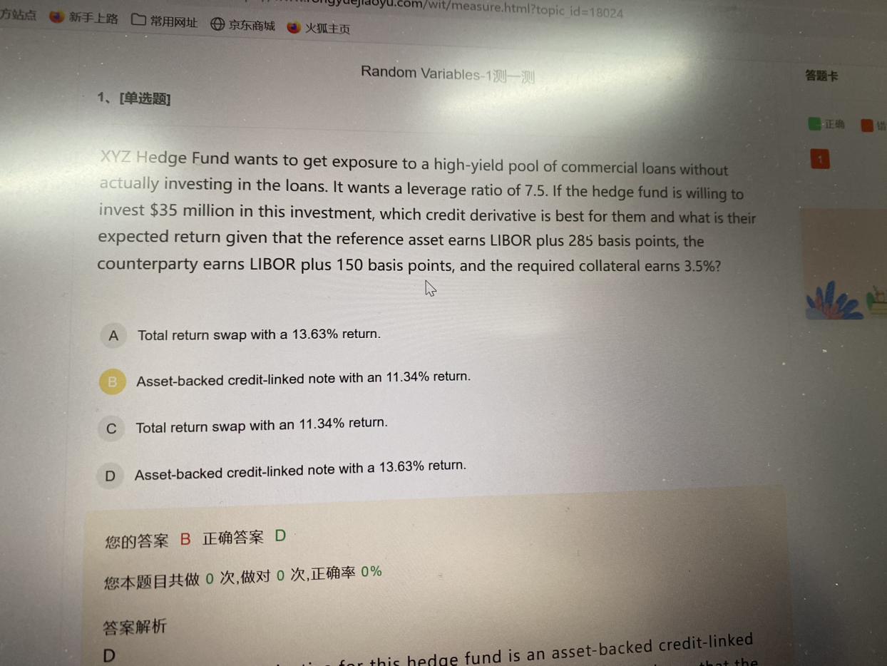 同学你好,reference asset代表题干中第一行出现的高收益的商业贷款,counterparty指的一般就是银行或者CLN的发行方,required collateral指的是对冲基金投资于CLN的资金35Million被CLN发行方购买无风险债券作为抵押品了。