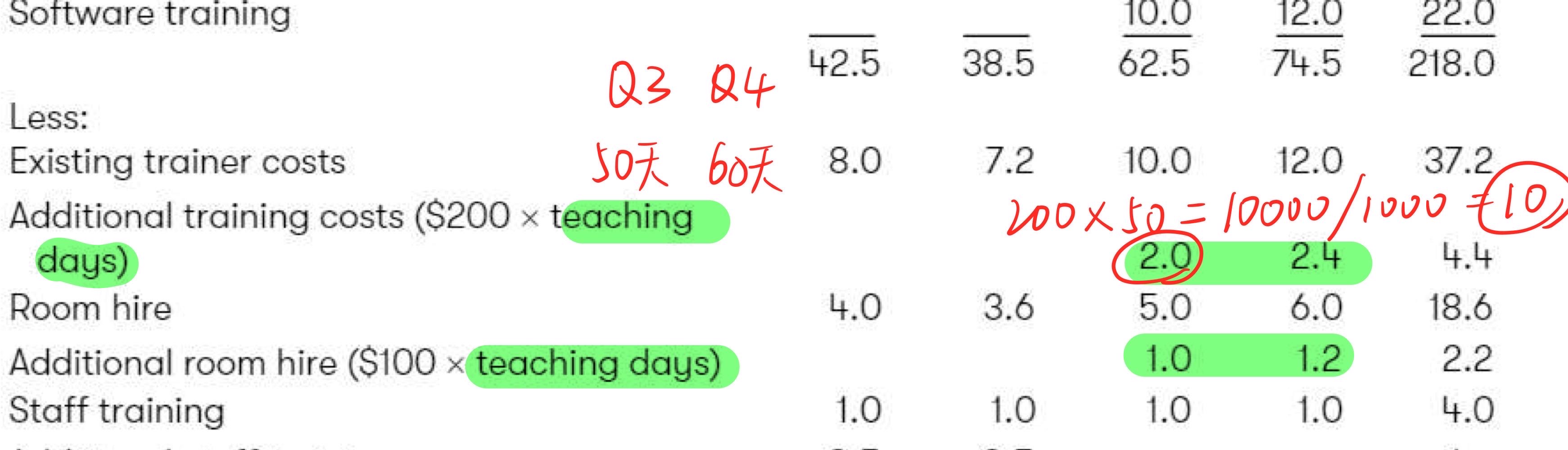 同学,麻烦看清楚题号哈,提供的题目跟答案不是一道题目,351是非盈利机构题目,没有涉及到training问题。麻烦再看一下题目公司名哈,方便老师快速找到问题进行解答,谢谢配合。