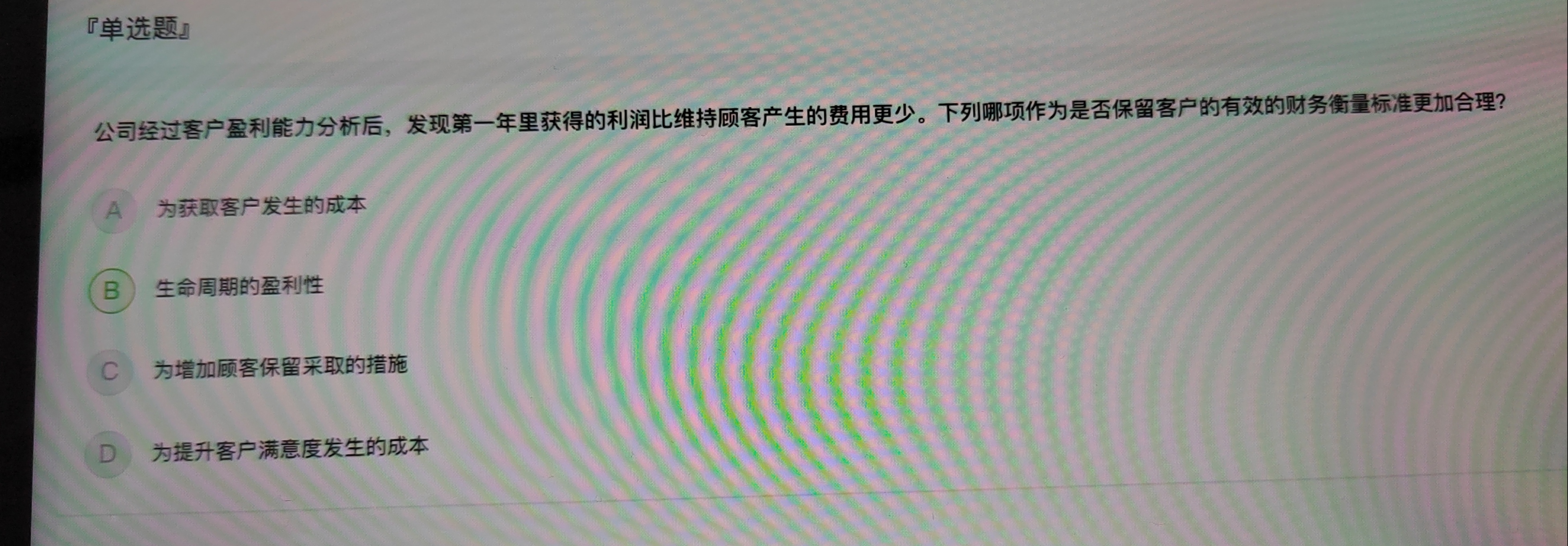 同学你好,题目中的意思是现在是支出的成本小于获得的利润,那该项目是否能保留。那是否继续保留,需要考虑的是将来能带来的收益是否大于覆盖成本,D选项只考虑了成本未考虑收益。B选项意思是,项目具有生命周期,前期是支出的成本高于利润,要判断整个项目盈利是否覆盖成本,所以选择B选项。