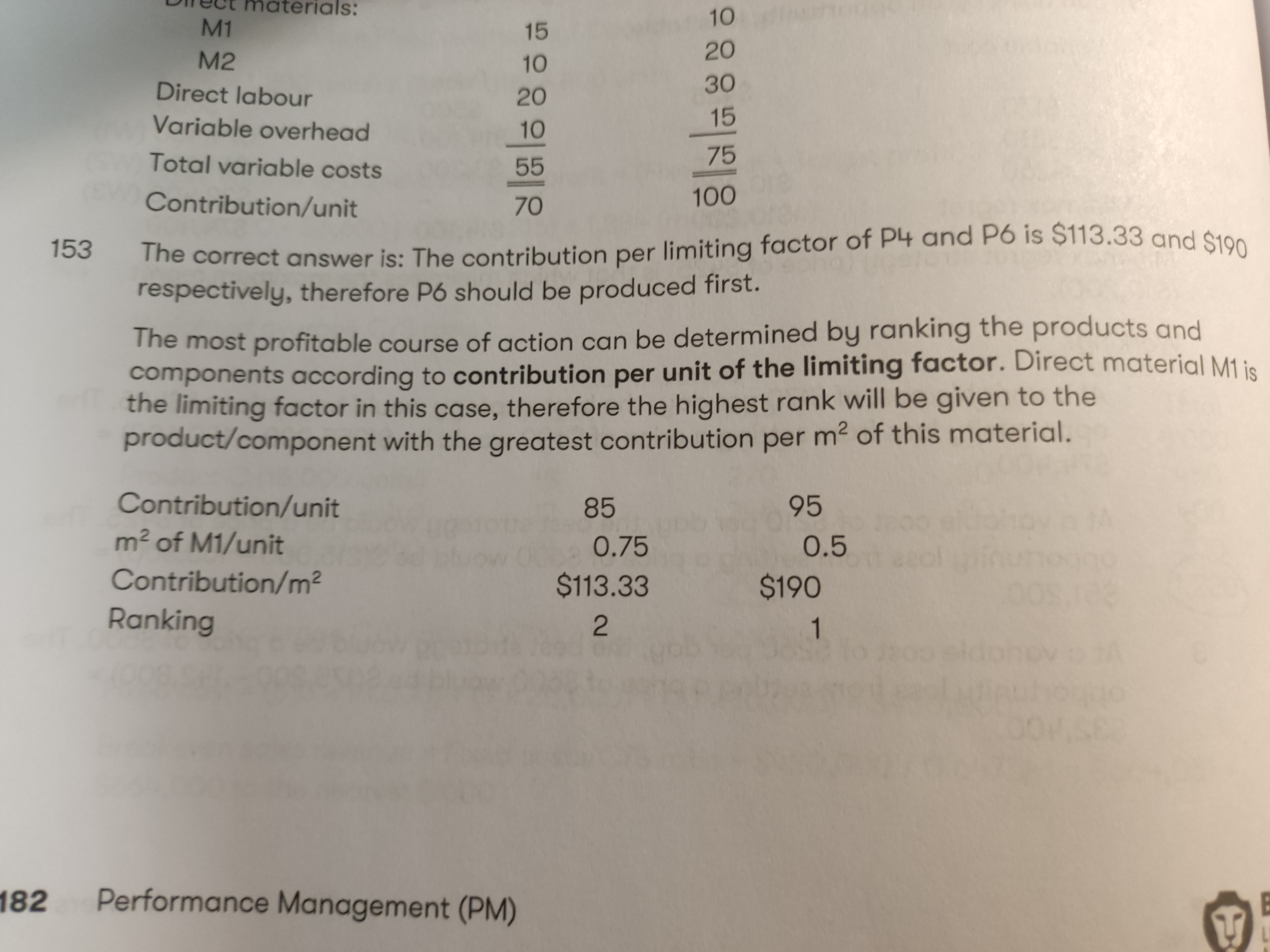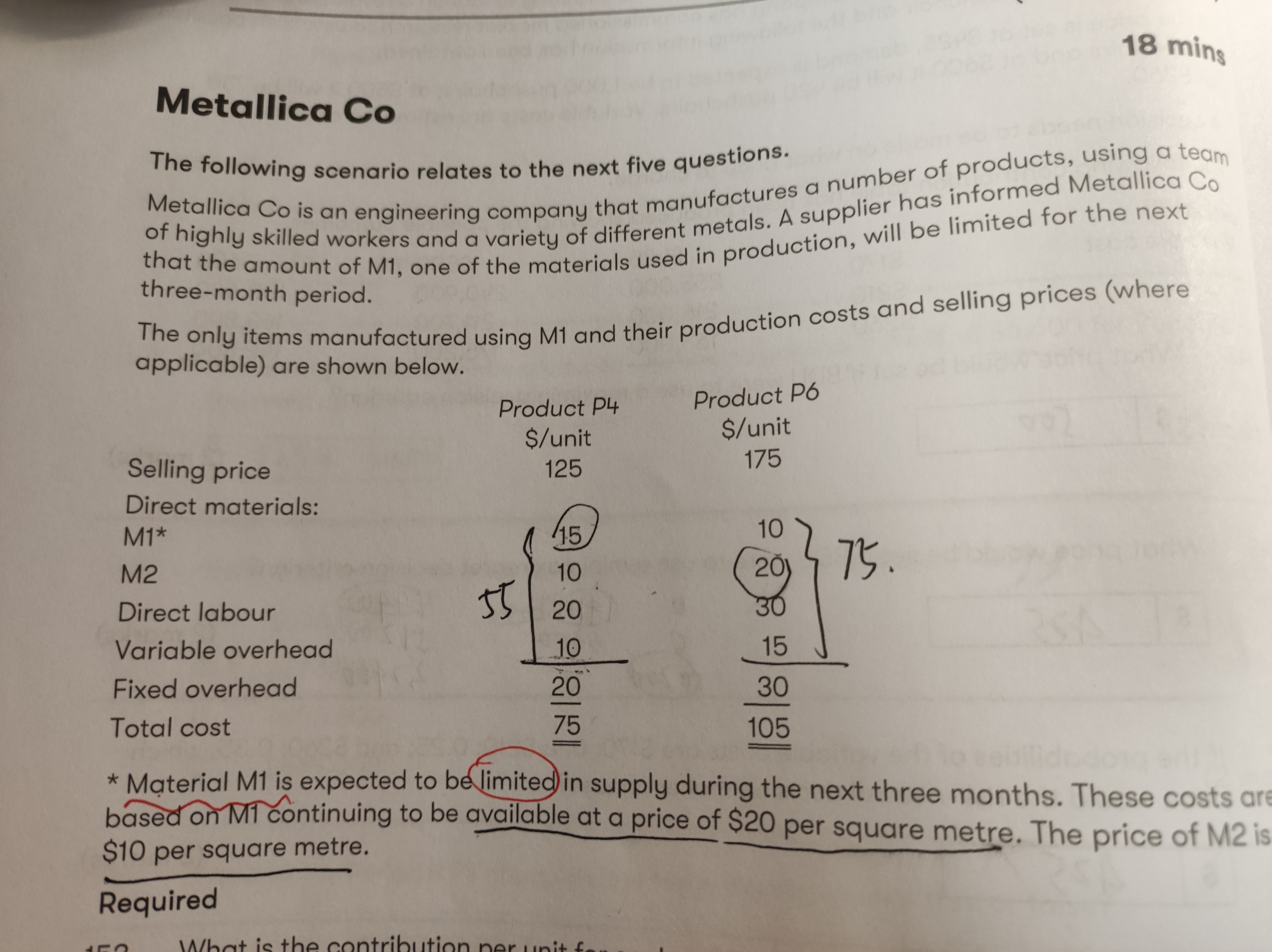 同学,P4的DM-M1是$15/units,而M1是$20/m2的,转化一下就是15/20=0.75 m2/unit;P6的DM-M1是$10/units,而M1是$20/m2的,转化一下就是10/20=0.5 m2/unit。