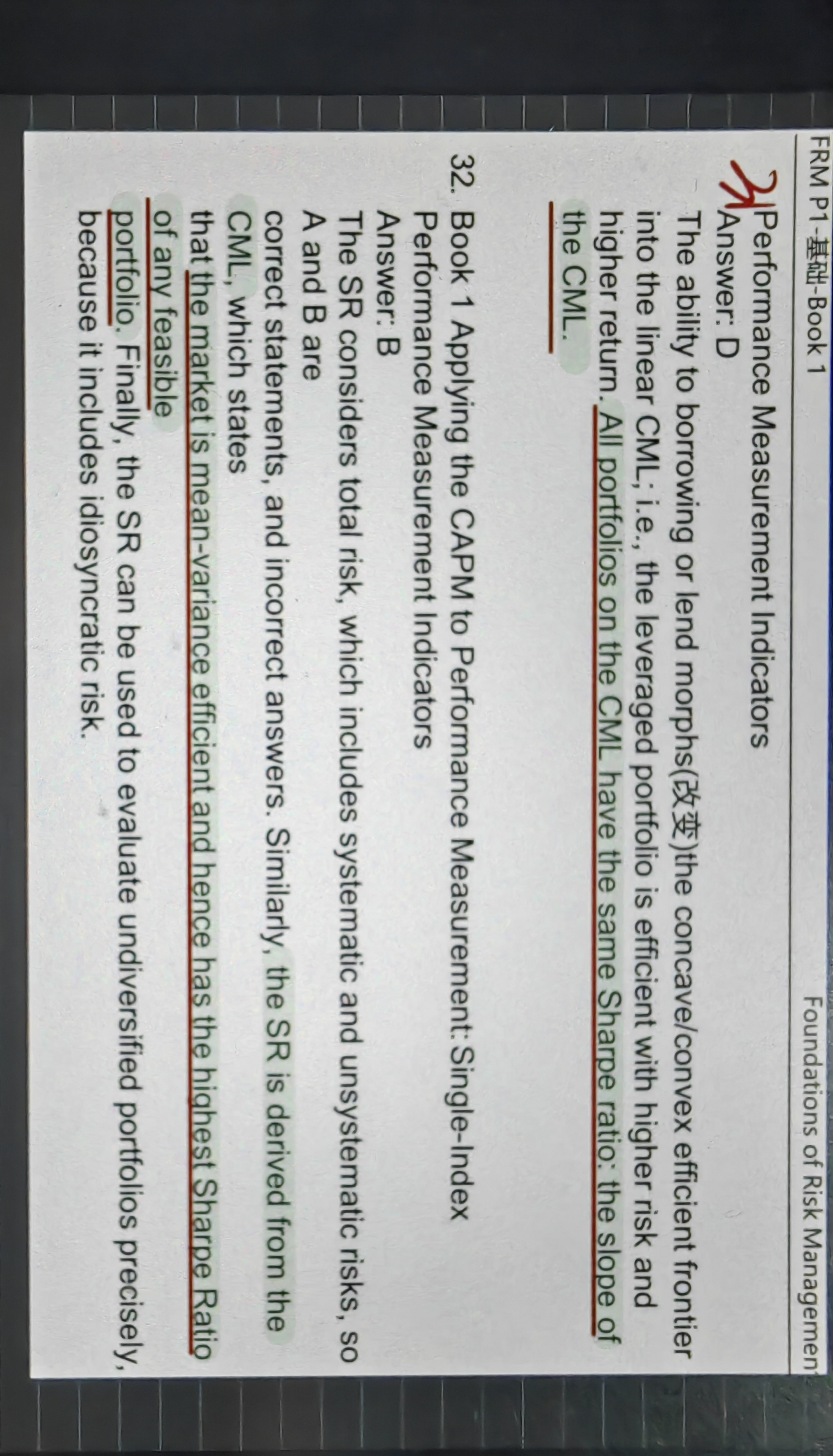 我们最开始介绍过一个CAL,CAL和有效前沿结合起来的最优解,就是CML,切点我们叫市场组合嘛。所以如果说sharpe ratio最大化,指的其实就是CML是所有CAL的最优解。因为无论是CML还是CAL,sharpe ratio就是斜率。那回到刚才我们的这句话,当我们在有效前沿的基础上,引入了无风险组合以后,会得到无数个无风险资产和有效前沿的结合体,他们统称为CAL,那我们要寻找的最优解,sharpe ratio 最大的一条线,也就是和有效前沿相切的那条线,就是CML。
