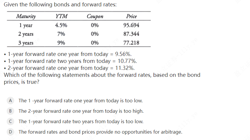 同学你好,1-year forward rate one year from today代表从今天为起点为期一年的远期利率,即F0,1也就是一年期的即期利率S1, 1-year forward rate two years from today代表以今天为起点开始算两年之后为期一年远期利率,也就是F2,1; 2-year forward rate one year from today代表以今天为起点开始算1年之后为期两年的远期利率,即F1,2;遵循一个原则:Fa,b,a代表从今年到远期利率开始计算中间的期限,b代表远期利率本身的期限。