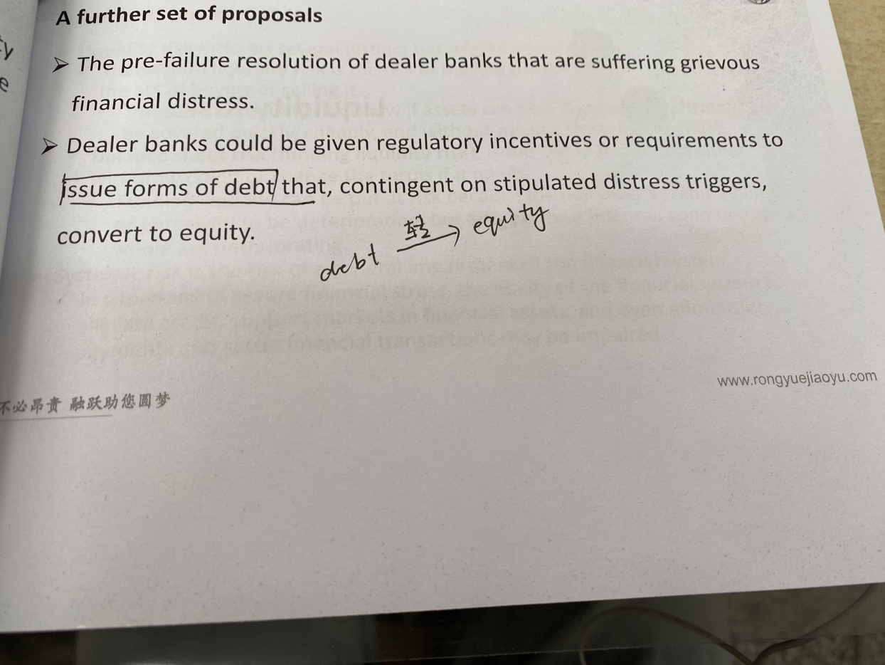 同学你好,这道题考察的是可转债的用途,对于银行而言在危机前根据监管机构的要求发行一些可转债,当出现危机的时候,这些可转债达到触发条件,债转股可以增加权益资本的数量,进而维持银行资本充足率的要求,这其实就是操作风险巴塞尔协议III种的Cocos。
