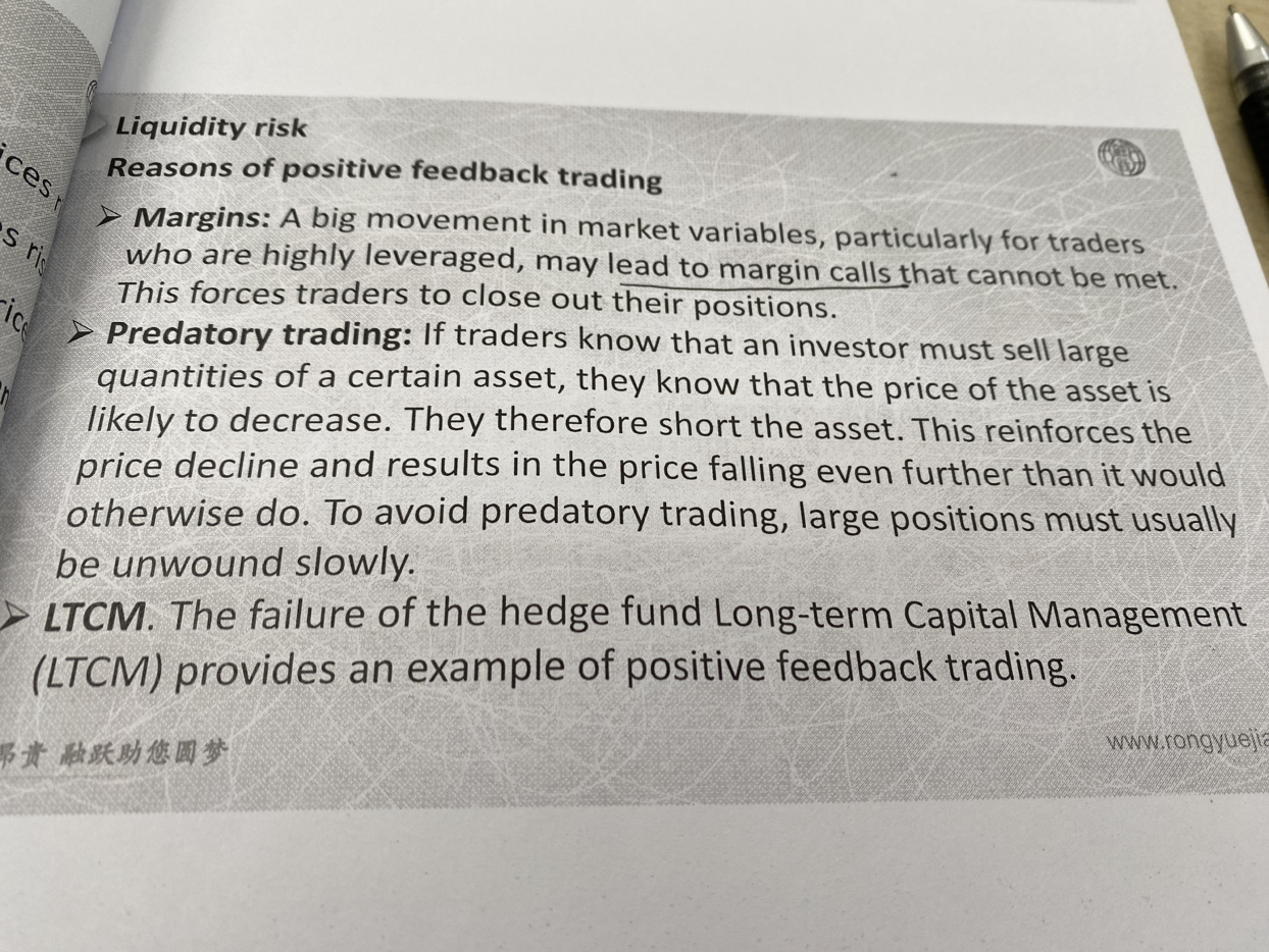 同学你好,这里指的是保证金交易,当市场出现不利方向的变动时(比如价格下跌)会引发保证金账户亏损导致保证金账户余额不满足维持保证金水平,于是就引发margin call补足保证金,如果价格下跌幅度较大,会直接强平,从而进一步加剧价格下跌。