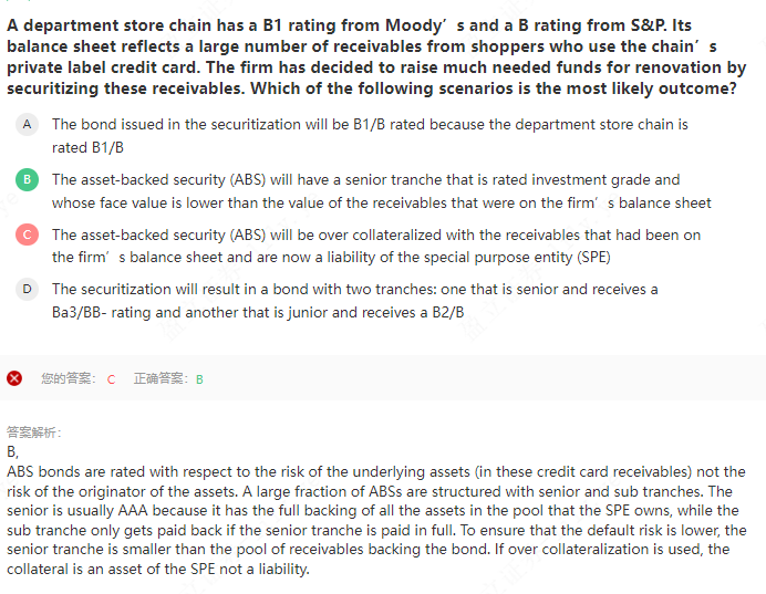 同学你好,over collateralization是超额抵押的意思,也就是拿应收账款作为资产进行抵押进行资产证券化,正常来说,比如用价值100的应收账款抵押可以发行价值100元的证券,那么如果用120元的应收账款作为抵押发行价值100的证券就是超额抵押了。