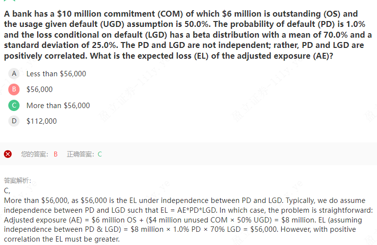 同学你好,贝塔分布是适用于描绘违约概率的一种分布,在数量分析科目有简单提到过,在这道题里面只是一个背景条件。