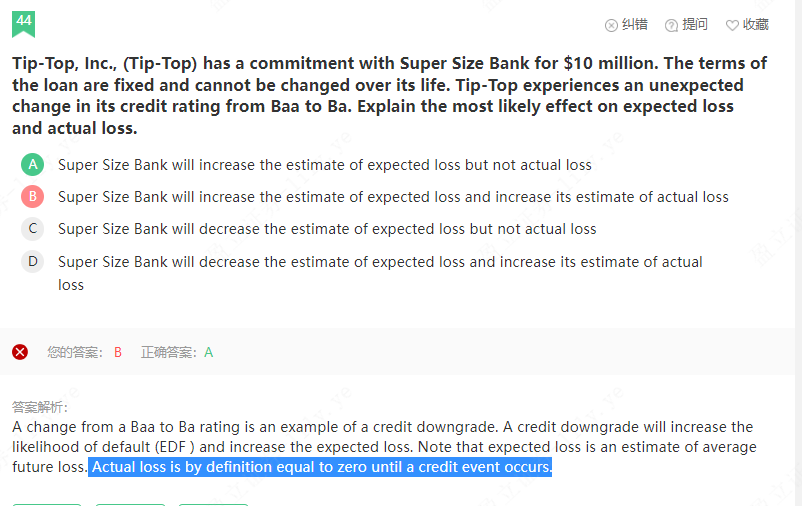 同学你好,没明白你的意思,蓝线部分的意思是在实际违约发生之前,实际损失为0。