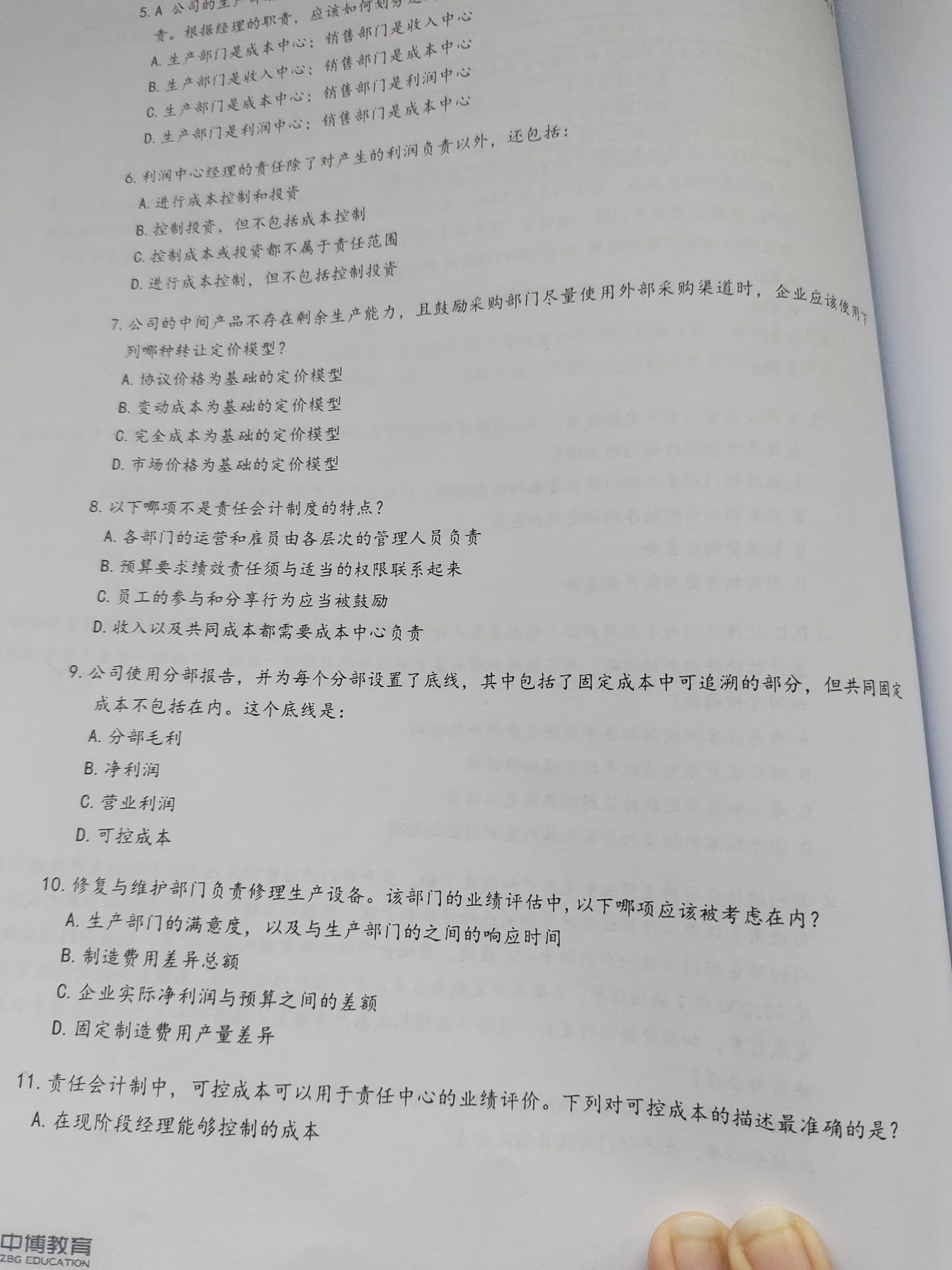 分部毛利等于分部的边际贡献减去该分部所有可以追溯的固定成本。但不包含共同固定成本,所以BC选项不对。D选项适用于贡献报告,贡献式报告把不受管理者控制的成本项与受管理者控制的成本项分离了。