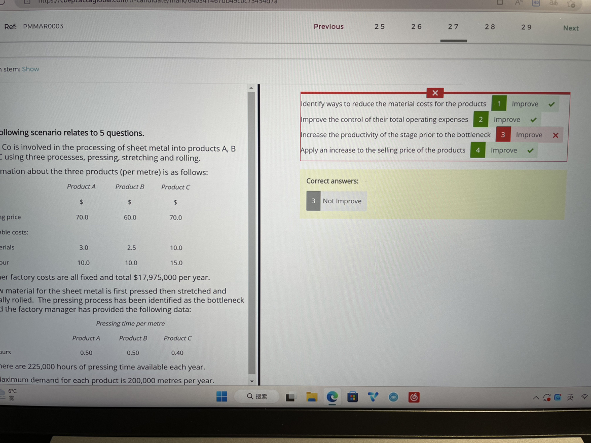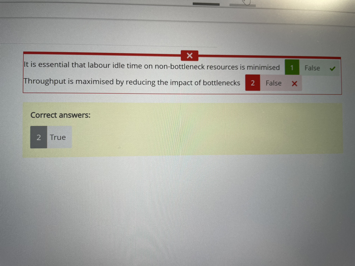同学,正式考试时写170.00即可,可能是模拟系统出现判断错误。在瓶颈资源前一个阶段提升生产力是对tp没有用的,该流程在瓶颈资源处还是要等待,是过不去的。降低对瓶颈资源的依赖就会提升TP,是正确的,TP的管理其实就是瓶颈资源的管理。