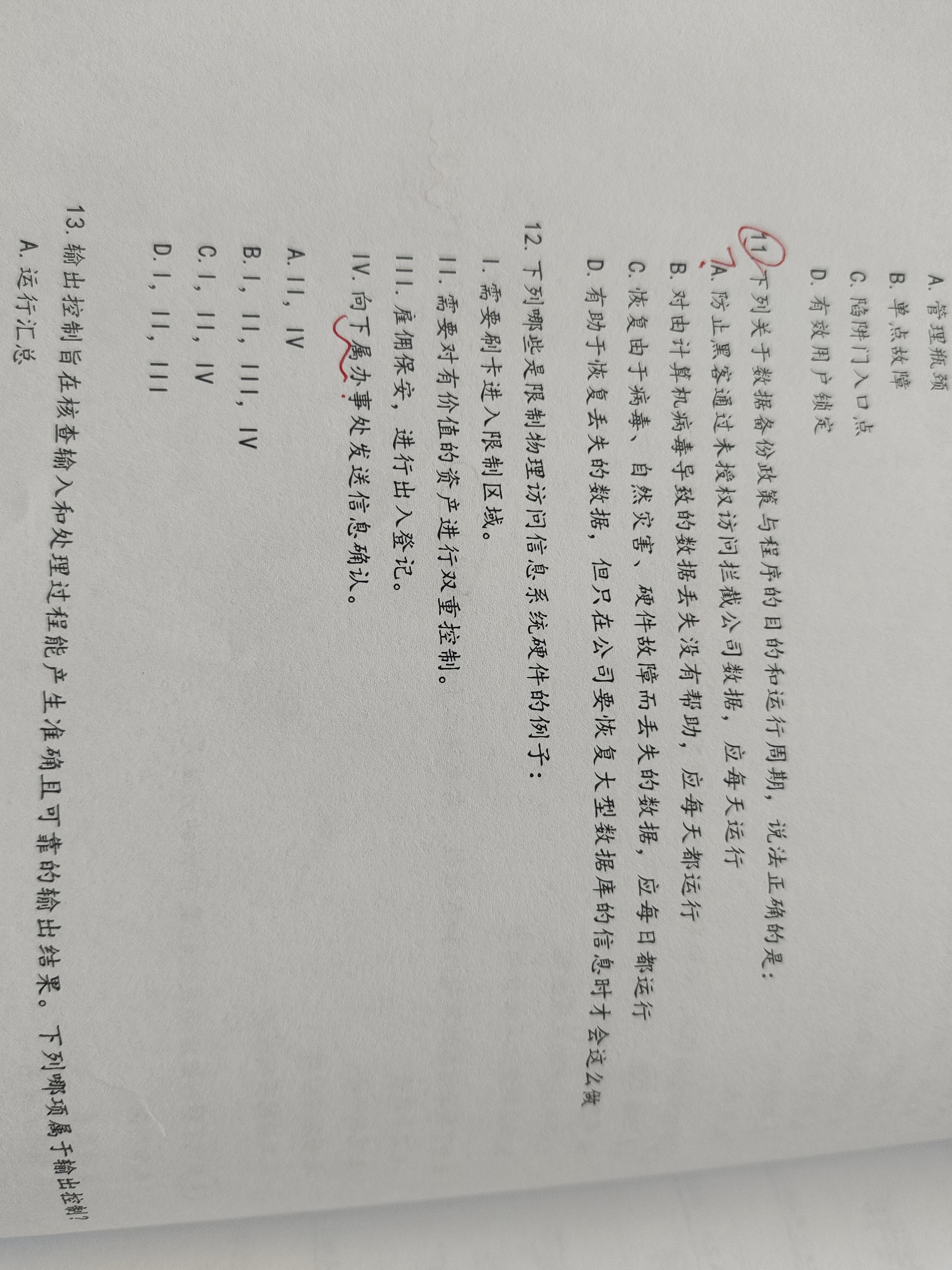 【第十一题】数据备份不能防止黑客,所以A选项不对