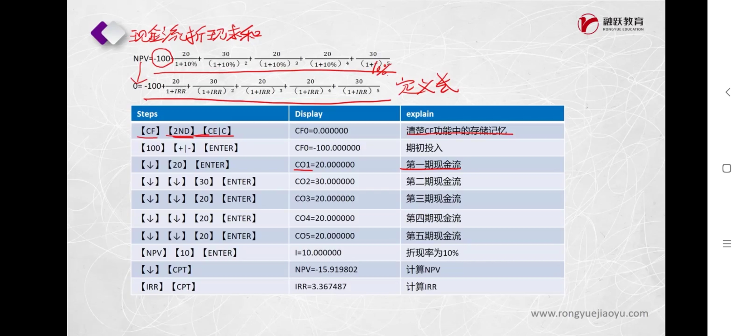 同学你好,是最上面的公式写错了,上一页题干中第五年的现金里就是20,这边反馈下。