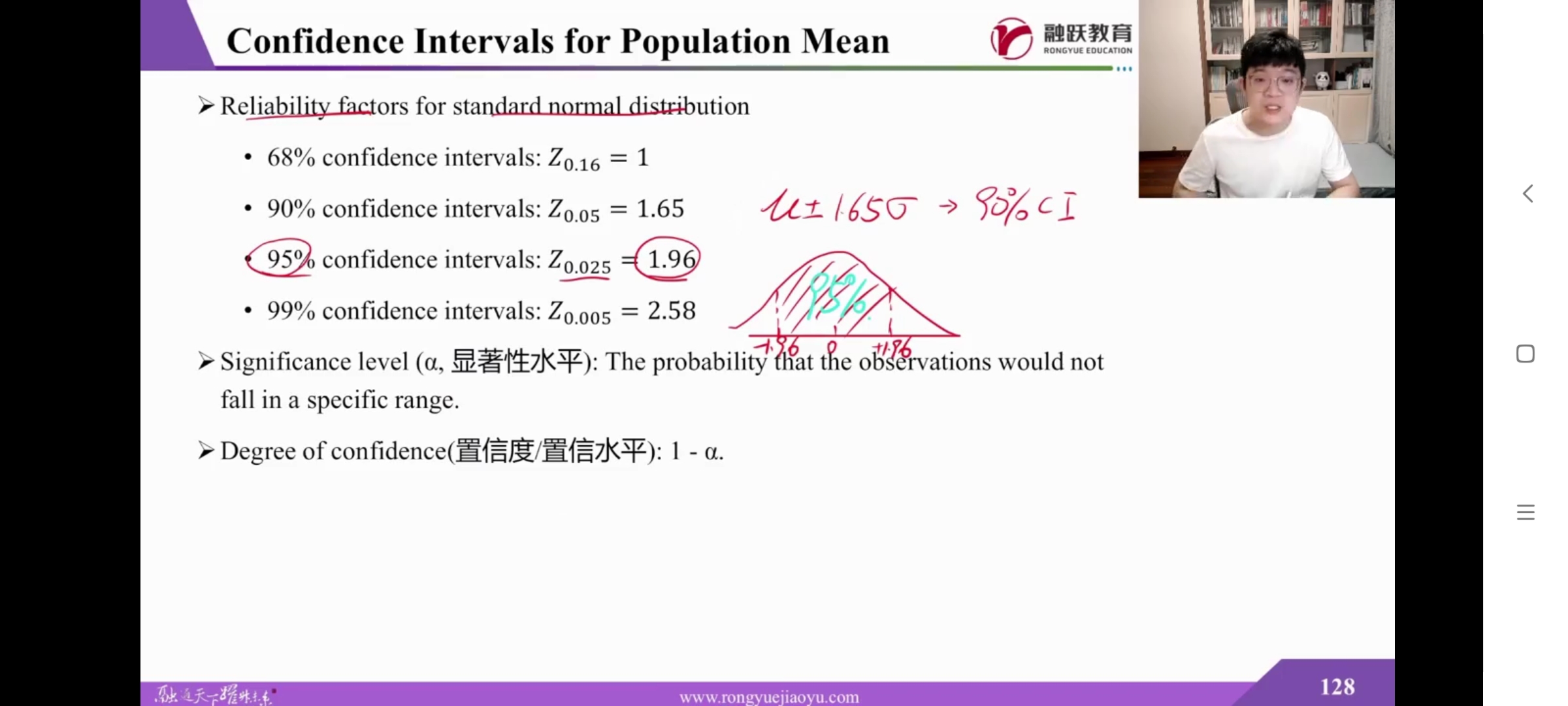 老师您好,在1.65*σ这里,不应该是在计算置信区间,使用标准误吗?为什么这里是用标准差,或者网课老师举例时不是在计算置信区间