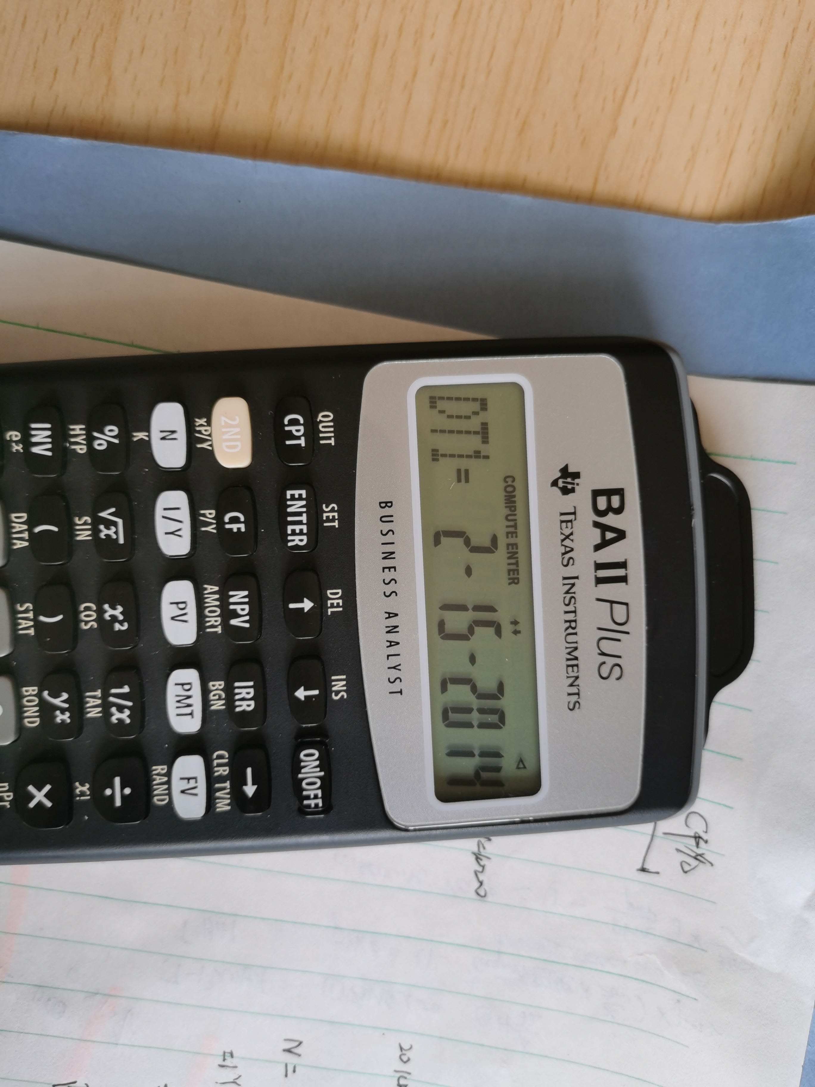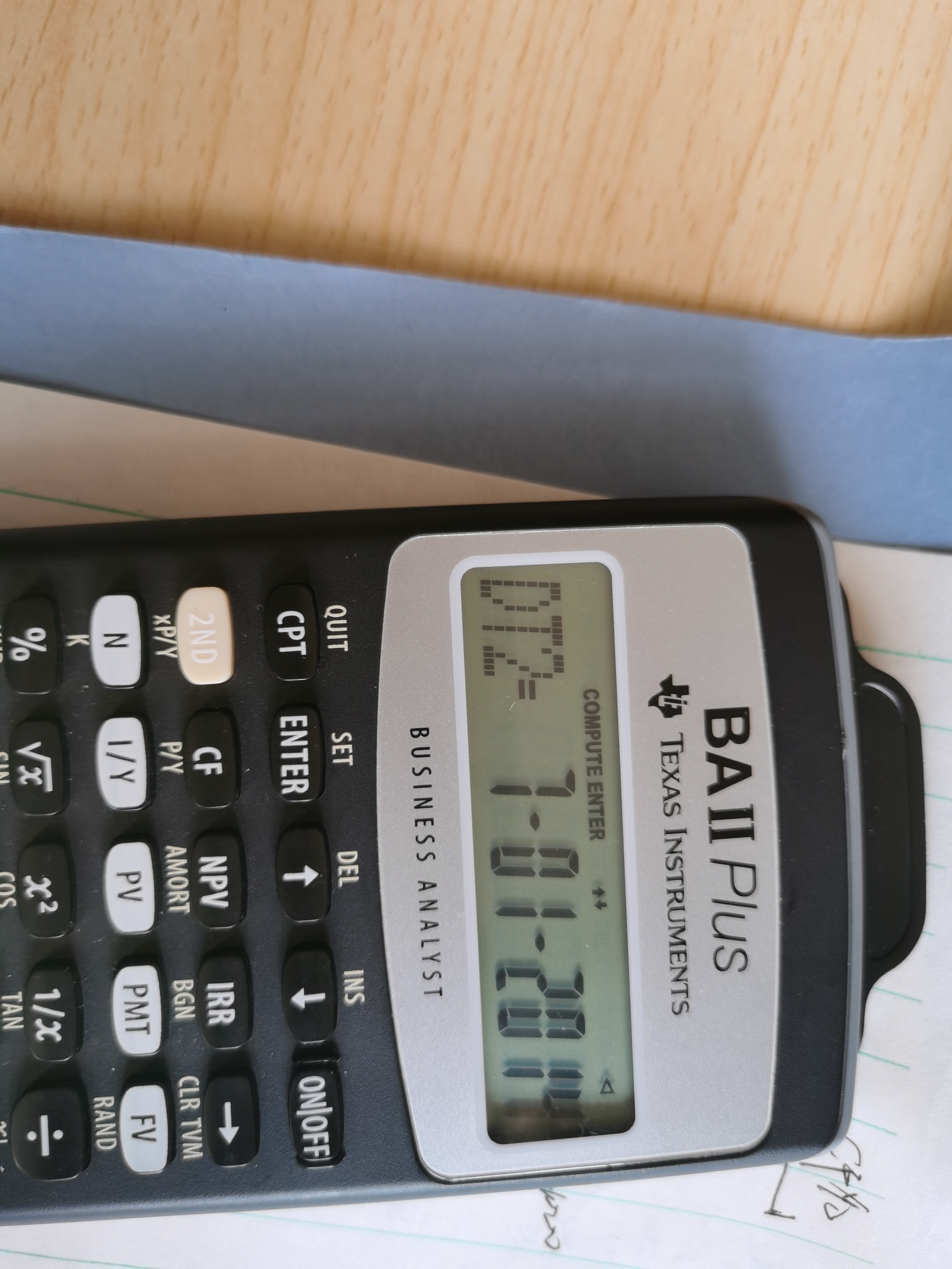 同学你好,DBD即(day between day),也就是两个日期之间天数的简称。计算器一般是默认按实际天数计算两个日期之间的天数,即ACT(actual)模式,所以一般不会显示365,属于正常情况,如果需要转换成360天模式,可以通过[2ND]和【enter】进行切换; 简单来说,计算过程先出现DBD,代表两个日期之间的天数,后出现ACT, ACT代表实际天数模式。两者是一个连贯的步骤,互不冲突。