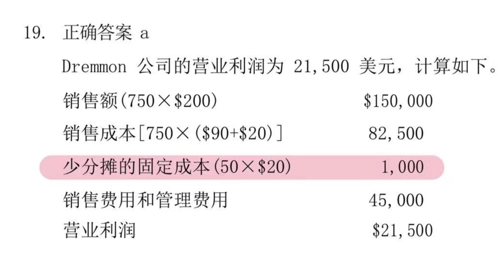 老师好,我不理解的是相同的题干下,AC和MC的营业利润为什么完全成本法会少分摊固定成本(也就是不利的数量差异)呢,是分摊的时候是按照销量700来分摊吗,但是AC计算成本的时候是按照产量来的,所以少分摊了“(产-销)*FOH”吗