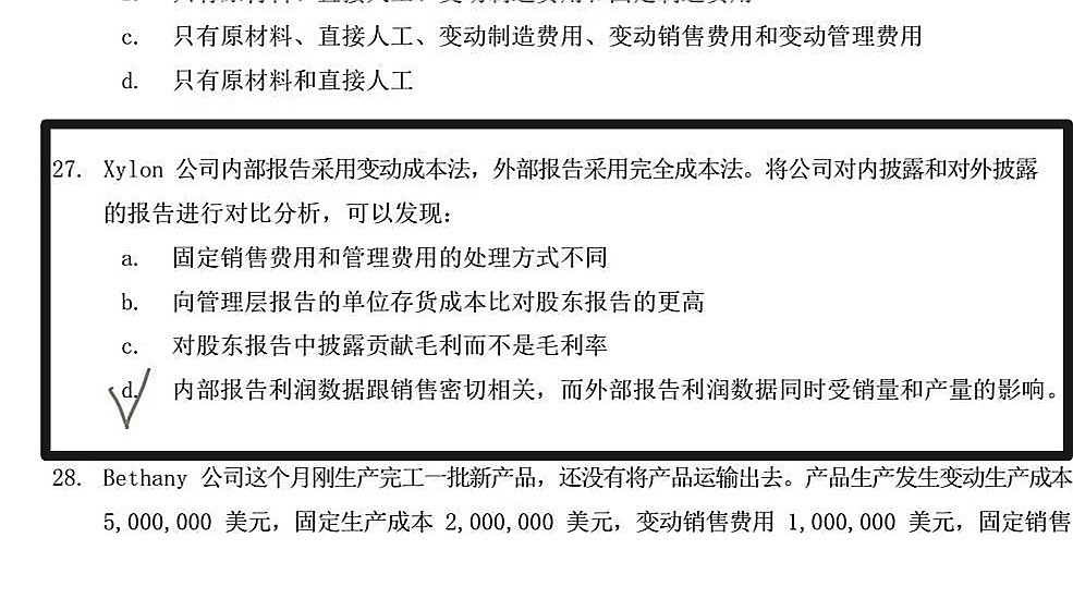 同学你好,D选项同时有变动成本法与吸收成本法,两者进行比较,所以点出区别。但如果单写“完全成本法下的利润数据只受产量影响”这句话是错的。 如果题目有写销量产量的信息,单写“它是受产量和销量两种因素影响的”我理解这句话还是可以的。但如果题干没有上述背景,我理解也是错的,因为影响利润的因素很多。