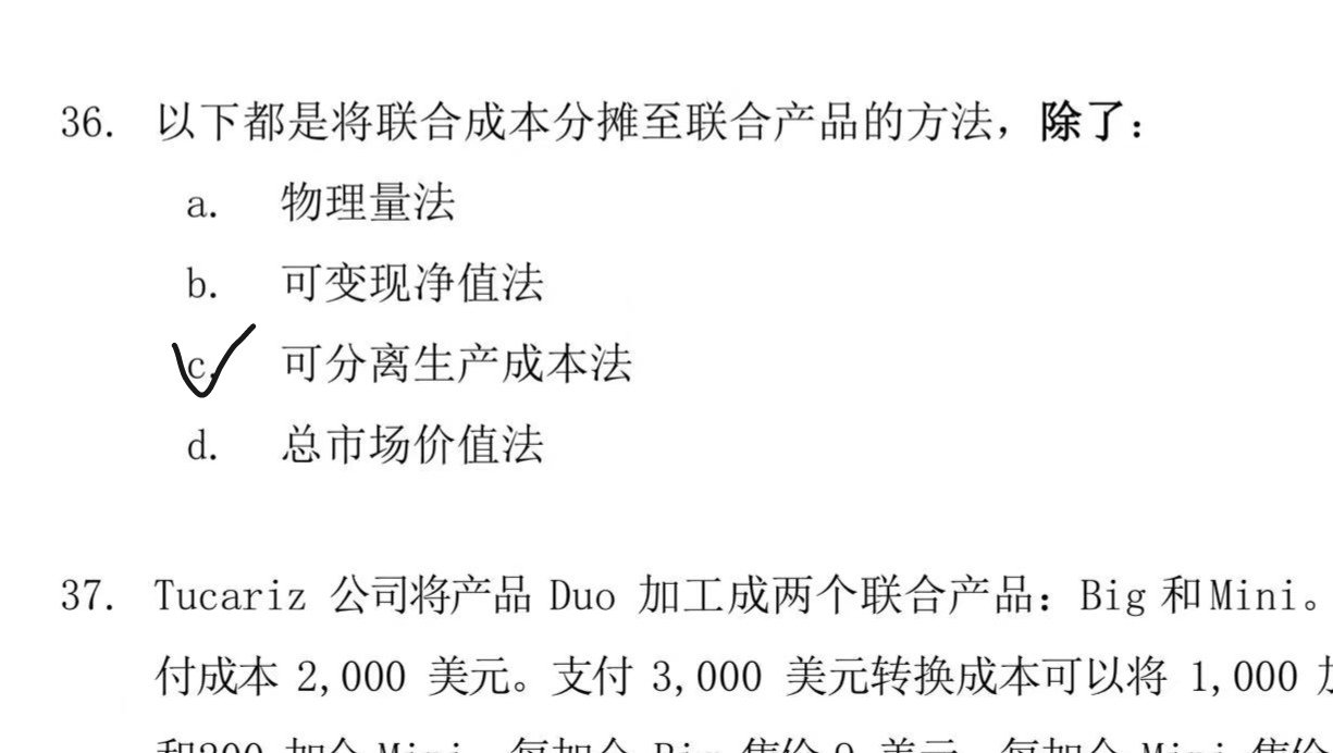 同学你好,(1)C选项:我没有找到这个可分离生产成本法呀。D选项:按照题目的意思,大概是吧。但一般称为:分离点销售价值法。(2)同学这些题目是融跃学管给的吗?我理解这道题目不准确,我在资料库里没有找到,麻烦告知一下出处,我这边修改一下我们题库。