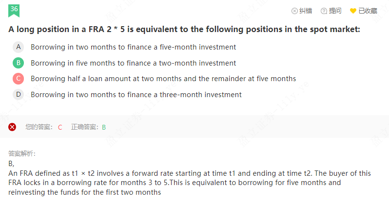 同学你好,FRA2*5的多头最初的目的就是像锁定从第三个月到第五个月这三个月的借款利率,那么他可以提前借(borrow)5个月的贷款,收到前后,可以在第一个月到第二个月放出去(即finance,放贷给他人收取利息),这样的话,他其实就只是承担了后三个月的利息,也就是提前锁定了后三个月的利率。