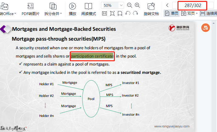 同学你好,这道题问的就是哪个选项是符合MPS的描述,participation certificate是参与凭证的意思。具体位置参考图片。