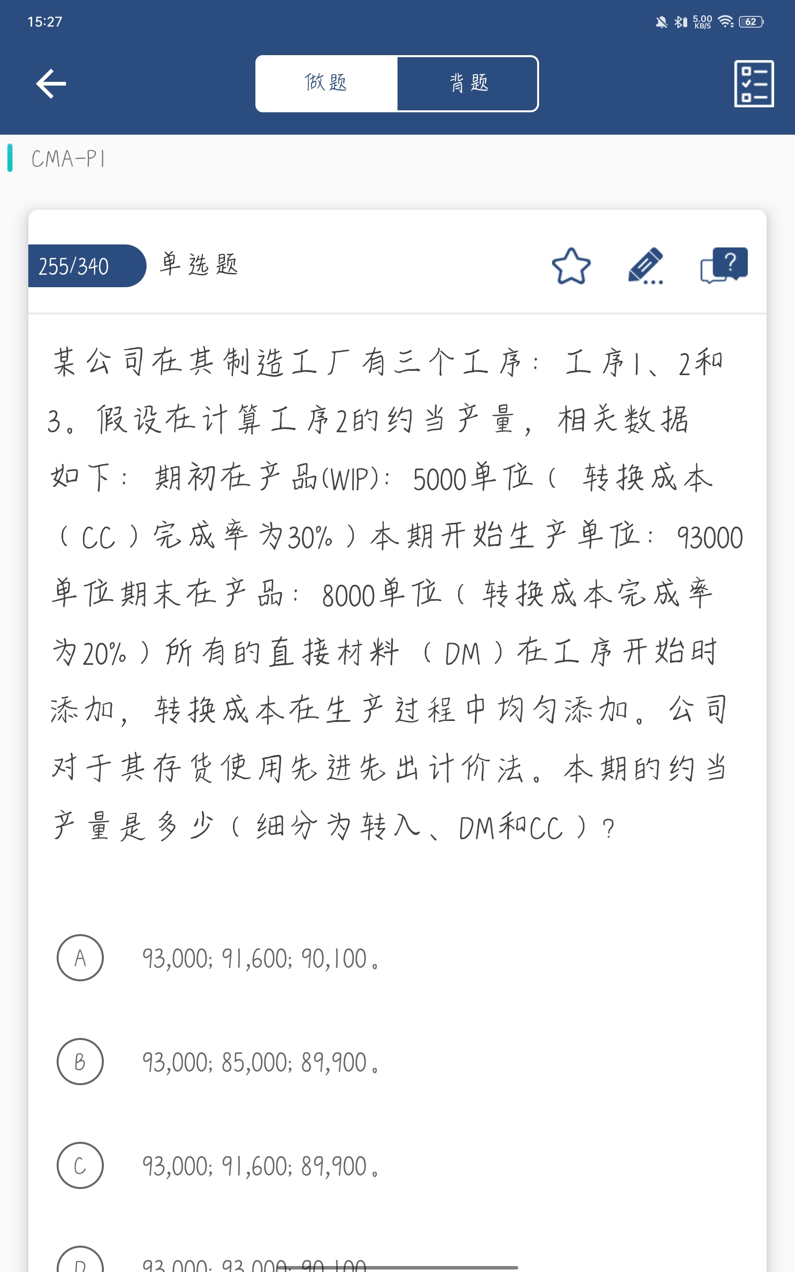 同学你好,首先等式是:期初余额+本期投入=完工产品+期末余额,所以完工产品=5000+93000-8000=90000单位,因为是先进先出法,这90000单位里面首先需要完工期初未完工的5000单位,之后再完成本期刚开始生产其完工的单位=90000-5000=85000单位。所以解析里面是本期开始生产并完工的数量=85000单位。