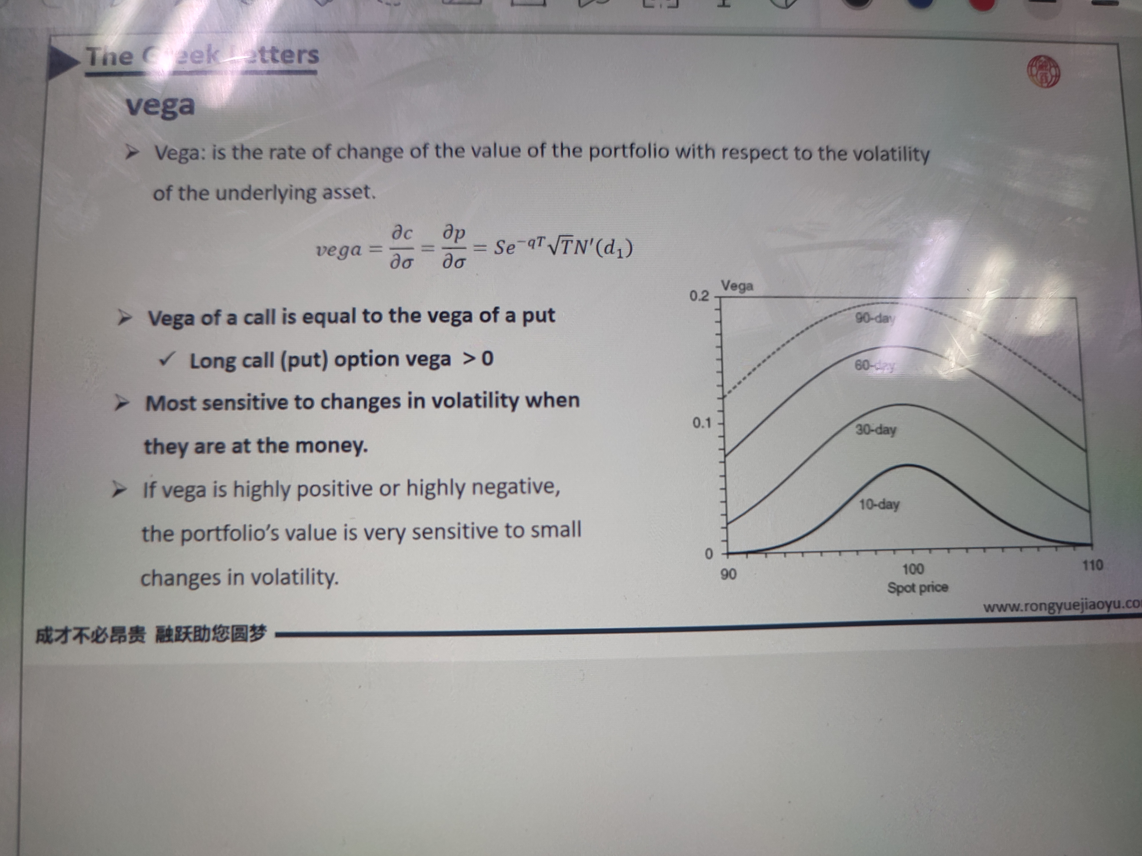 你可以翻一下课件上得图,at the money状态下,vega达到最大,随着期权逐步out of the money,vega会开始下降,在对应某些期限下,vega理论上是可以走到极限值,也就是降到0的。课件上的图,一定要熟悉,总结的规律,一定要掌握好。