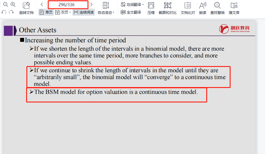 同学你好,这道题考察的时二叉树模型跟BSM模型之间的区别和联系:即当二叉树的步长(即时间间隔)变小时,二叉树的计算结果会趋近于BSM模型的计算结果,你也可以立即为BSM模型是二叉树的时间上的连续升级版。PPT上位置参考图片