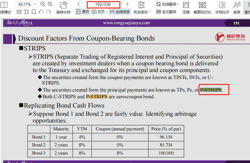 来自:FRM > 一级 > 电脑版 > Unit 16.债券定价和估值 2023-04-07 11:43