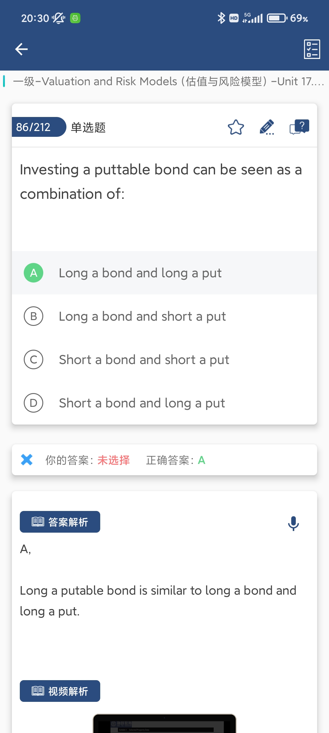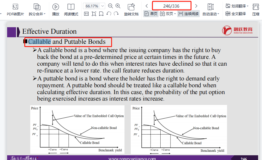 同学你好,这个本身就是puttable bond和callable bond 的定义,putable bond是可卖回债券,可以认为是一种附带了看跌期权的债券(即在利率下跌时卖给发行人的权力,觉得以后会跌,此时可以卖个好价格); callable bond是可赎回债券,它的发行人有权在特定的时间按照某个价格强制从债券持有人手中将其赎回(买回的权力,看好以后会涨)。也译作可买回债券。可认为是债券与看涨期权的结合体。所以puttable bond=long straight bond+long put option,callable bond=long straight bond+short call option