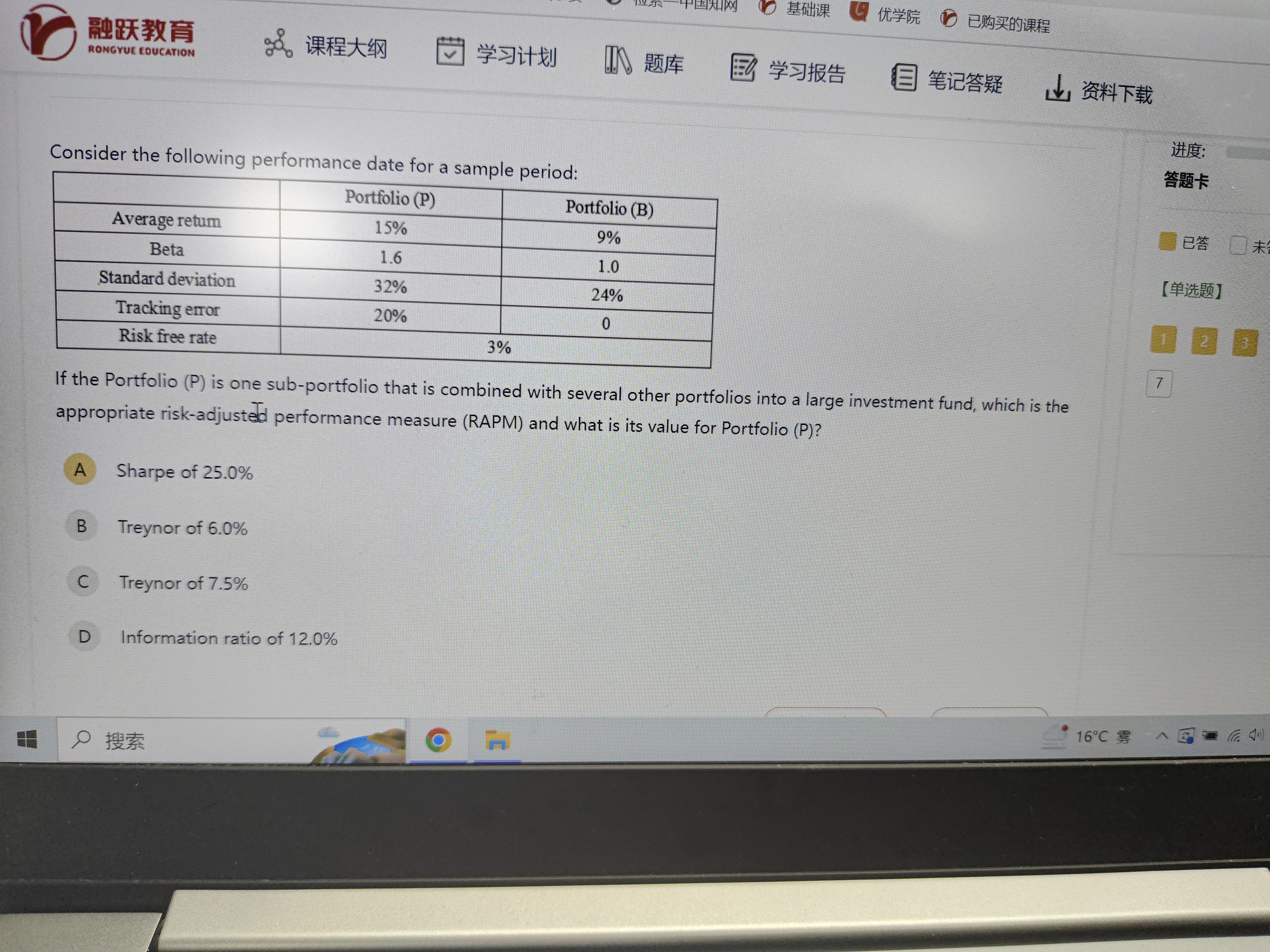 同学你好,不是必须要计算TR,而是因为选项中的SR计算结果不正确[正确应该是(15%-3%)/32%=37.5%]