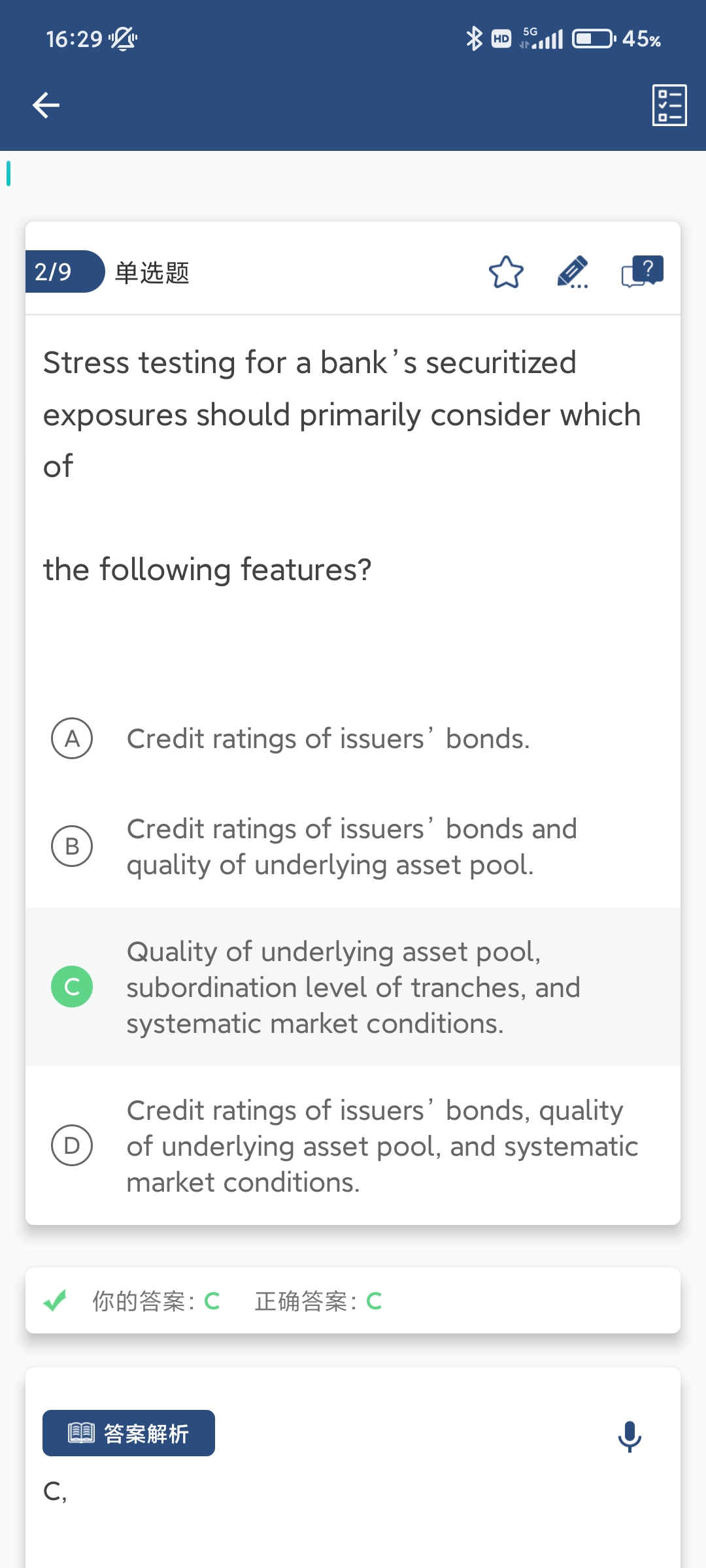 除了上次我回答你的内容,还有就是我们在07-09次贷危机这个部分学习的时候,批判过评级机构对证券化产品评级的滞后性,不准确性,还提到了评级套利,这也就意味着用评级评估证券化产品本身就有很大的问题,所以在做压力测试的时候,我们就不太考虑评级的变动,因为他对产品风险的描述本身就有失准确性