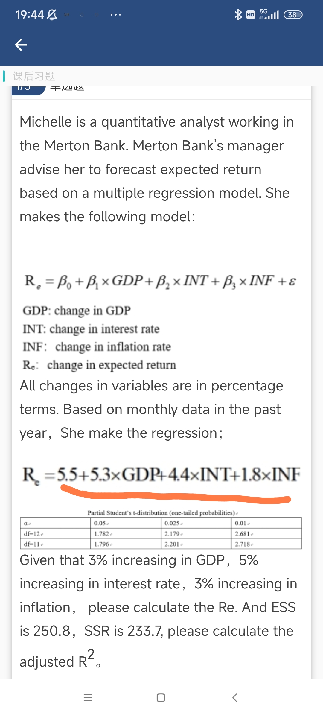 同学你好,因为这道题中的回归方程中的因变量就是银行的预期收益,把自变量中的增量数值,比如GDP的增量数值3%代入到回归方程中得出的因变量数值就是因变量的增量数值,即该银行的预期收益的增量数值,所以可以直接代入,然后再把这个增量数值加上本年的收益,就是下一年的具体预期收益。