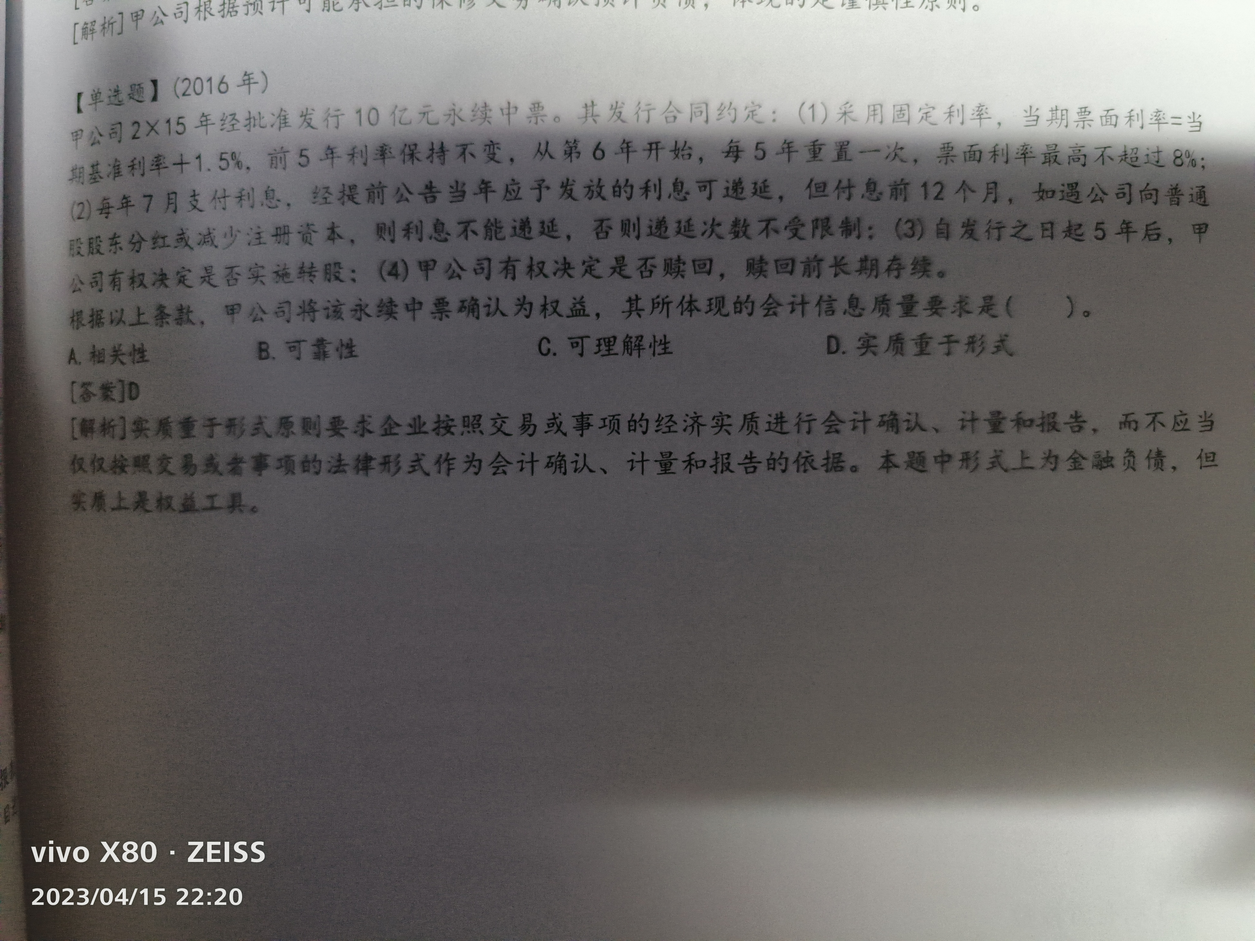 同学您好 永续中票:是指无明确到期期限,并在某一年或几年末赋予发行人赎回选择权,若发行人不行使赎回权,将永久存续的中期票据。“债券之名、权益之实” 不存在强制支付义务(包括本金和利息),而是给予一定条件下的发行人自由选择权。
